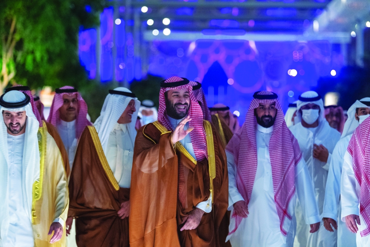 زار الأمير محمد بن سلمان بن عبدالعزيز آل سعود ولي العهد نائب رئيس مجلس الوزراء وزير الدفاع في المملكة العربية السعودية، جناحي المملكة العربية السعودية ودولة الإمارات في إكسبو 2020 دبي، أمس، وإلى جانبه سمو الشيخ حمدان بن محمد بن راشد آل مكتوم، ولي عهد دبي، وسمو الشيخ منصور بن زايد آل نهيان، نائب رئيس مجلس الوزراء وزير شؤون الرئاسة.