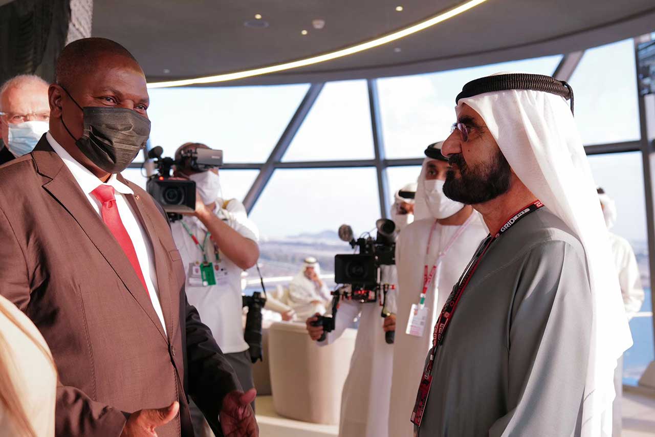 التقى صاحب السمو الشيخ محمد بن راشد آل مكتوم، نائب رئيس الدولة رئيس مجلس الوزراء حاكم دبي، رعاه الله، رئيس جمهورية أفريقيا الوسطى، على هامش ختام بطولة "جائزة الاتحاد للطيران الكبرى للفورمولا 1" التي أُقيمت منافساتها على حلبة مرسى ياس في العاصمة أبوظبي.