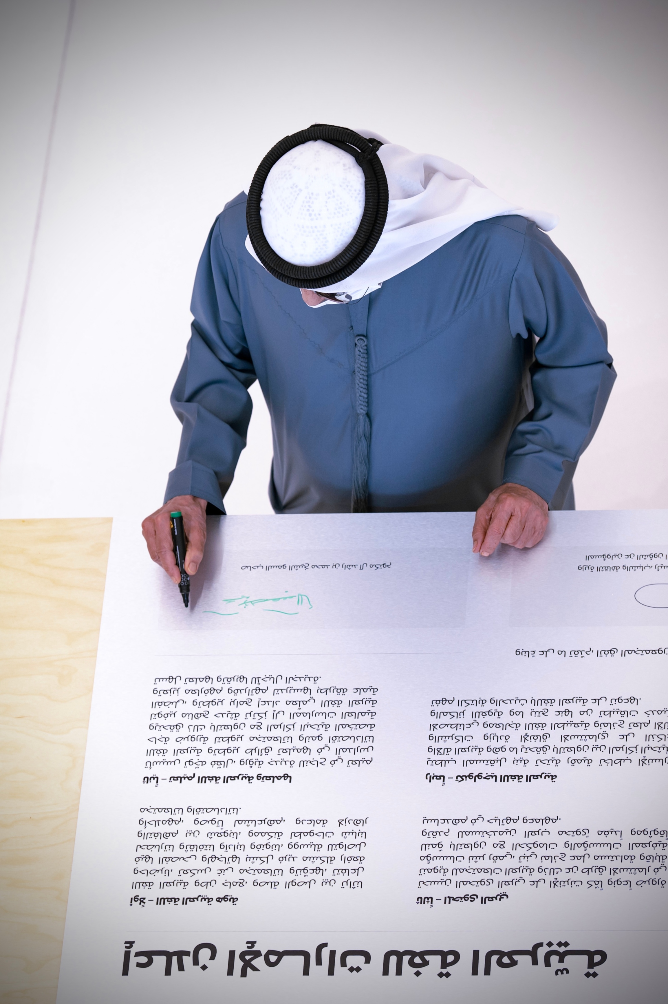 ووقّع على إعلان الإمارات للغة العربية إلى جانب سموه، أحمد أبو الغيط، الأمين العام لجامعة الدول العربية، ومحمد ولد أعمر، المدير العام للمنظمة العربية للتربية والثقافة والعلوم، ونورة بنت محمد الكعبي، ليصبح الإعلان خارطة طريق موحدة لجميع المؤسسات في الدول العربية.