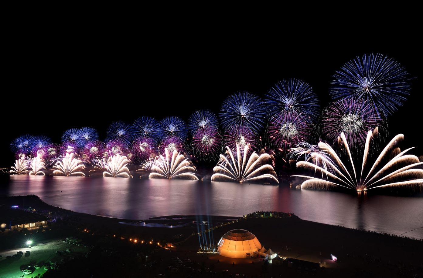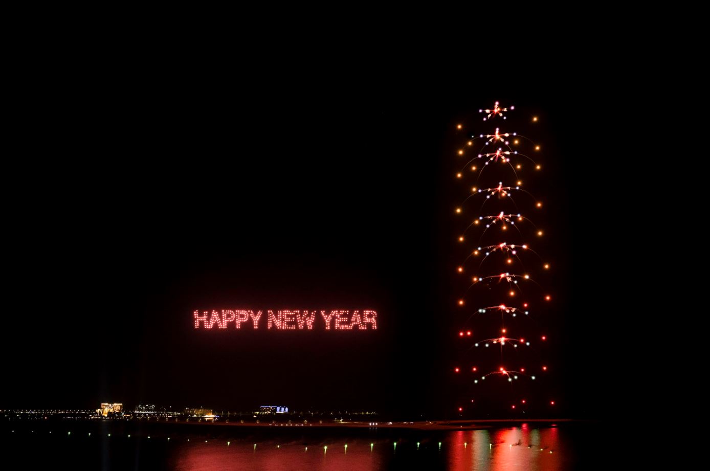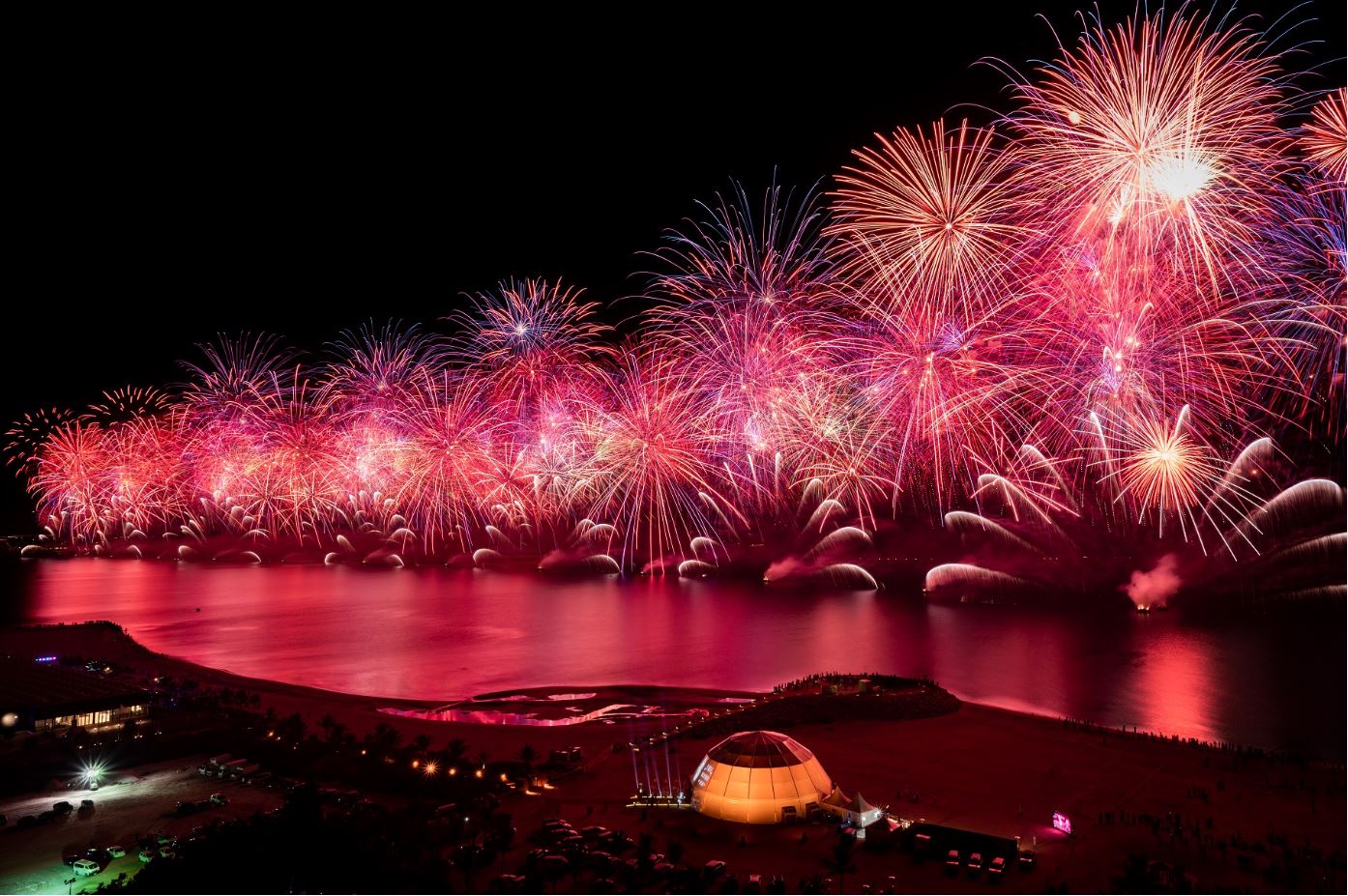 وانطلقت الألعاب النارية لتحلق فوق مياه الخليج العربي في مشهد مهيب أسر أبصار العالم، وتضمن هذا العرض المتميز تشكيلات مبتكرة قدمتها طائرات من دون طيار على مسافة أكثر من 4.7 كيلومترات. واستمر العرض لمدة 12 دقيقة وتألف من ست مراحل يحمل كل منها طابعه الخاص، وذلك على وقع أنغام جوقة موسيقية ليجسد مشاعر البهجة الخالصة بعودة الاحتفالات الجماعية التي افتقدها العالم بسبب الجائحة. ومنح التناغم التام بين حركة الأضواء وإيقاع الموسيقى الزوار والمتواجدين في مواقع التخييم المخصصة لهذا الحدث بصحبة أصدقائهم وأفراد أسرهم، أحد أكثر التجارب الاحتفالية تألقاً على الإطلاق.