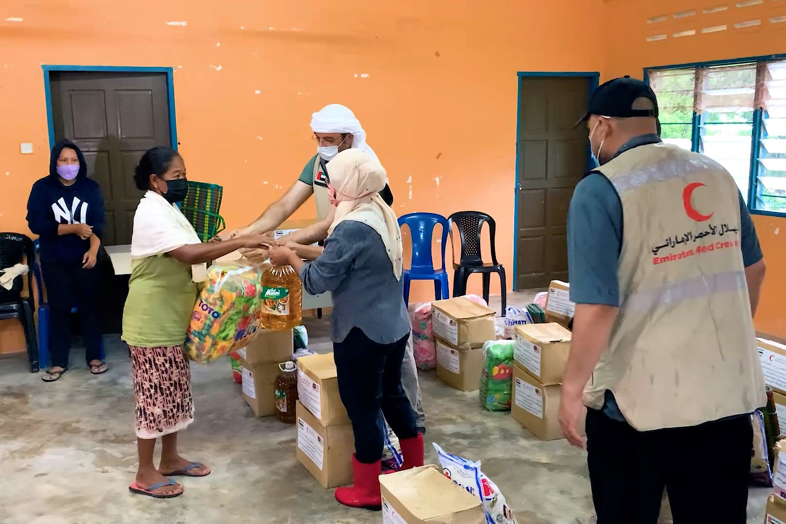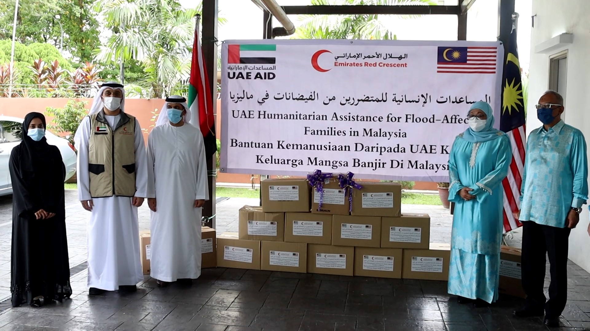 وزعت هيئة الهلال الأحمر الإماراتي 250 طناً من المواد الإغاثية على المتأثرين من الفيضانات في ماليزيا ضمن المرحلة الأولى من المساعدات الإغاثية التي تقدمها الهيئة، بتوجيهات صاحب السمو الشيخ محمد بن زايد آل نهيان، ولي عهد أبوظبي نائب القائد الأعلى للقوات المسلحة، ومتابعة سمو الشيخ حمدان بن زايد آل نهيان، ممثل الحاكم في منطقة الظفرة رئيس هيئة الهلال الاحمر الإماراتي.