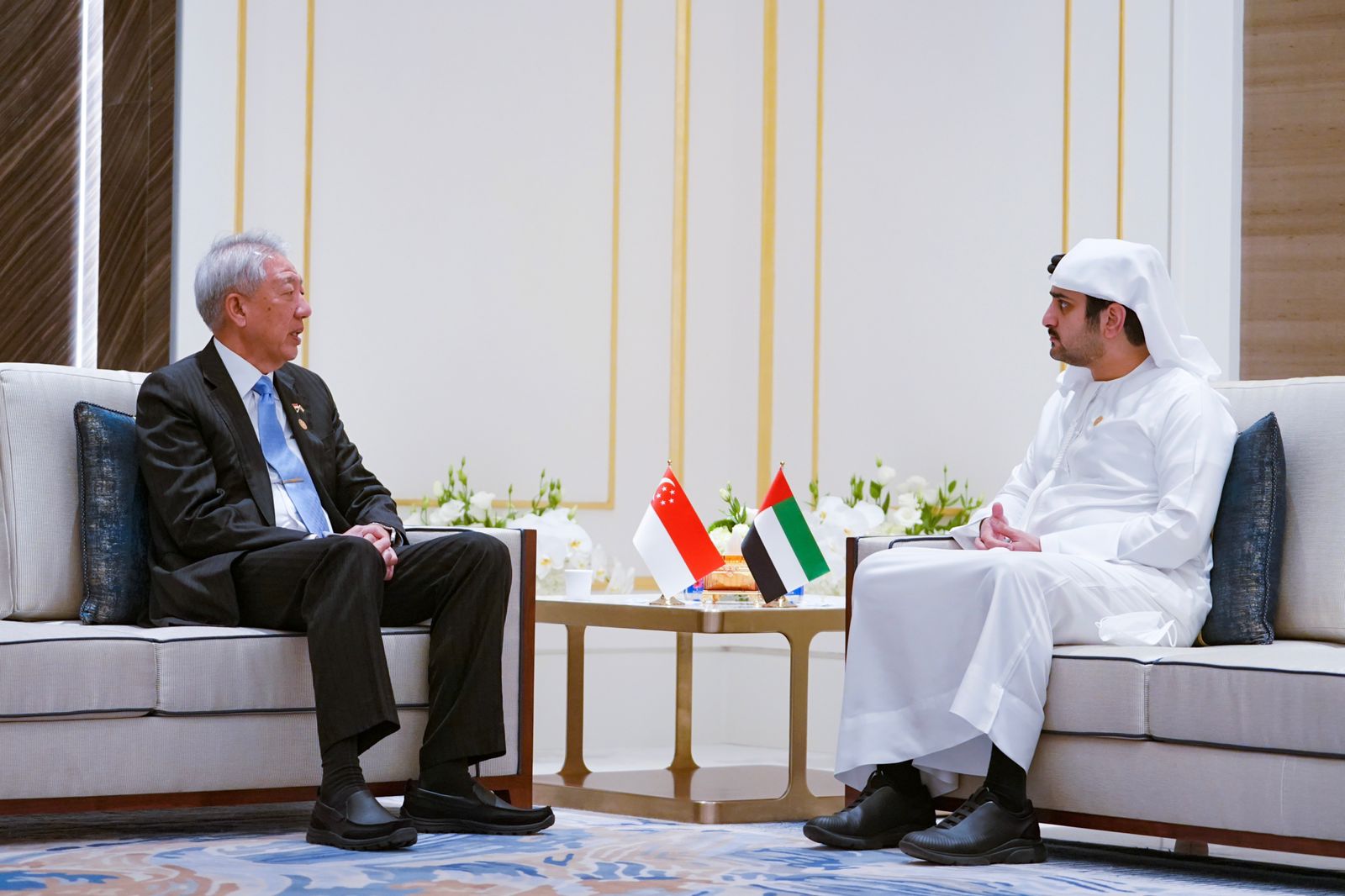 استقبل سمو الشيخ مكتوم بن محمد بن راشد آل مكتوم، نائب حاكم دبي نائب رئيس مجلس الوزراء وزير المالية، تيو تشي هين، كبير الوزراء والوزير المنسق للأمن القومي في جمهورية سنغافورة الصديقة، والذي يزور الدولة حالياً للمشاركة في الاحتفال باليوم الوطني لبلاده في "إكسبو 2020 دبي".