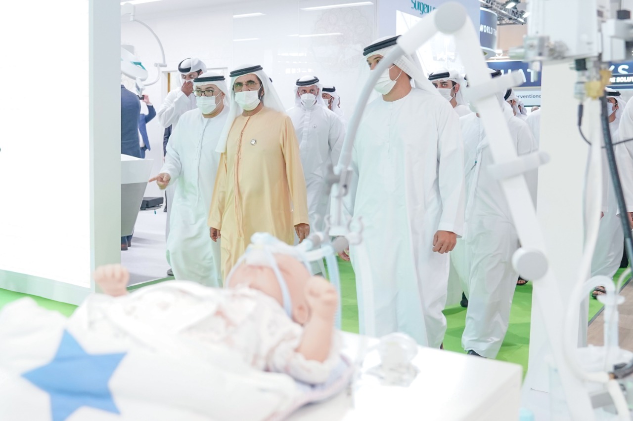 جاء ذلك خلال زيارة سموه، يرافقه سمو الشيخ مكتوم بن محمد بن راشد آل مكتوم، نائب حاكم دبي نائب رئيس مجلس الوزراء وزير المالية، وسمو الشيخ منصور بن محمد بن راشد آل مكتوم، إلى معرضي الصحة العربي "آراب هيلث"، وميدلاب الشرق الأوسط 2022، أكبر معارض الرعاية الصحية والمختبرات في منطقة الشرق الأوسط وشمال أفريقيا، بمقره في مركز دبي التجاري العالمي، والذي انطلقت أعماله في دبي الأثنين الماضي وتختتم فعالياته اليوم (الخميس) بمشاركة عالمية ضخمة تناهز 3500 شركة من 60 دولة.