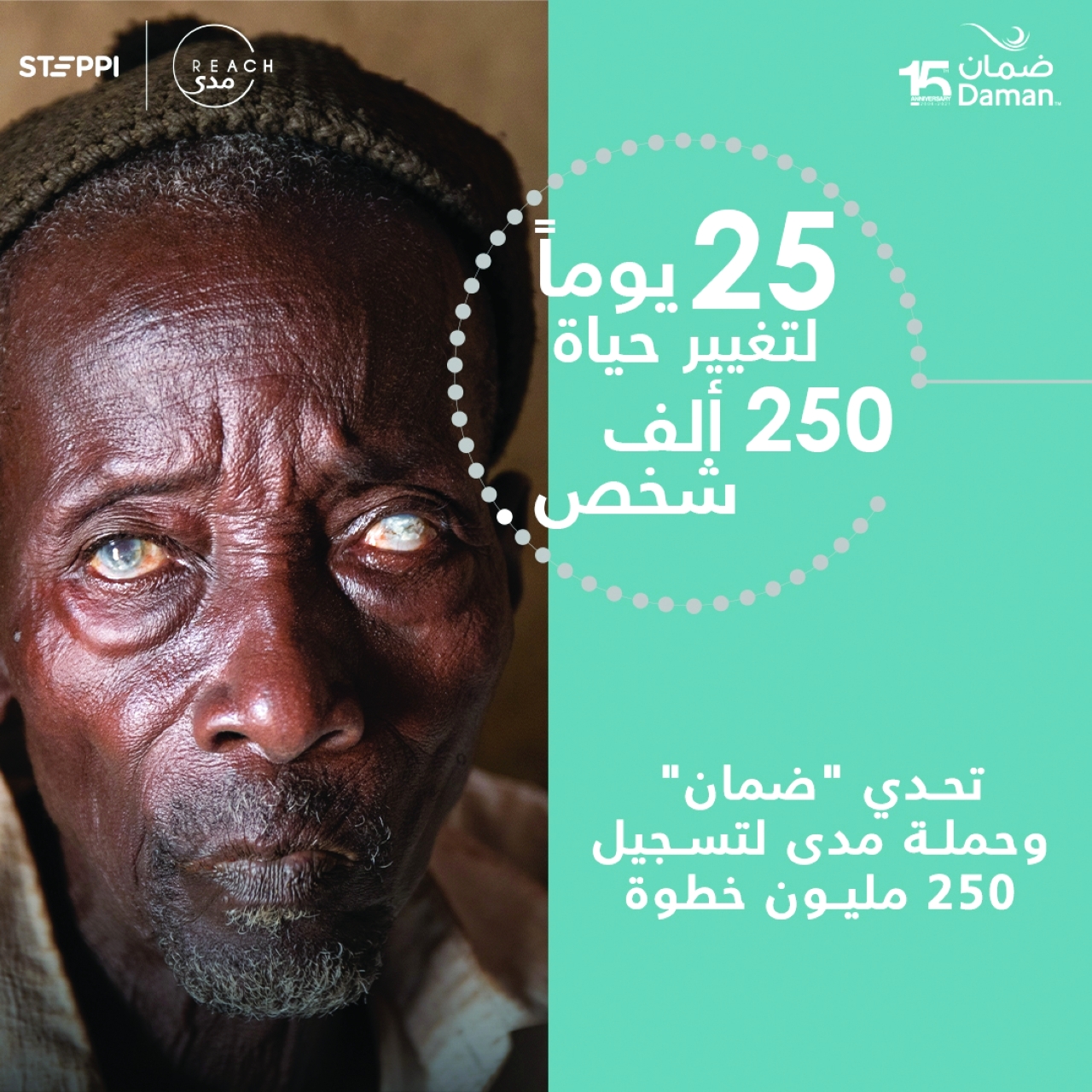 وتعهدت «ضمان»، بتقديم 500 ألف درهم عند وصول إجمالي الخطوات التي يقطعها مُستخدمو منصة «ستيبي»، إلى 250 مليون خطوة، وذلك بما ينسجم مع أهداف الشركة الرامية إلى إحداث أثر اجتماعي إيجابي، والتشجيع على تبني نمط حياة صحي، وسيتم تخصيص هذه التبرعات لدعم حملة مدى، للقضاء على داء العمى النهري، وداء الفيلاريات اللمفي.