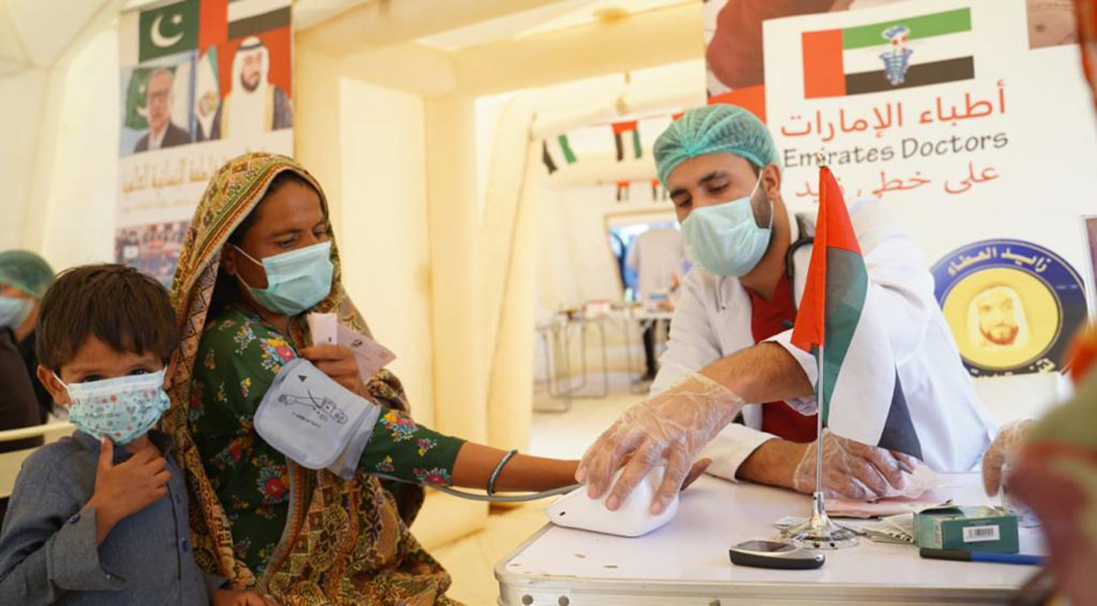 وقال إن المستشفى الميداني التطوعي في محطته الحالية في إقليم السند يأتي تعزيزا لدور الإمارات الإنساني والتنموي في باكستان والتضامن مع مرضى الامراض المزمنة والمعدية والوقوف الى جانبهم في ظروفهم الراهنة، مؤكدا ان اطباء الامارات وباكستان قدموا نموذجاً مميزاً ومبتكراً للتطوع الصحي، وساهموا بشكل فعال في إيجاد حلول واقعية لمشاكل صحية يعاني منها المرضى من كبار السن ونجحوا في التدخل السريع لمساعدة الأشقاء وتقديم كل ما من شأنه أن يخفف من معاناتهم ويساهم في تحسين أوضاعهم بالسرعة التي تتطلبها ظروفهم الراهنة في بادرة لرد الجميل للأشقاء الباكستانيين