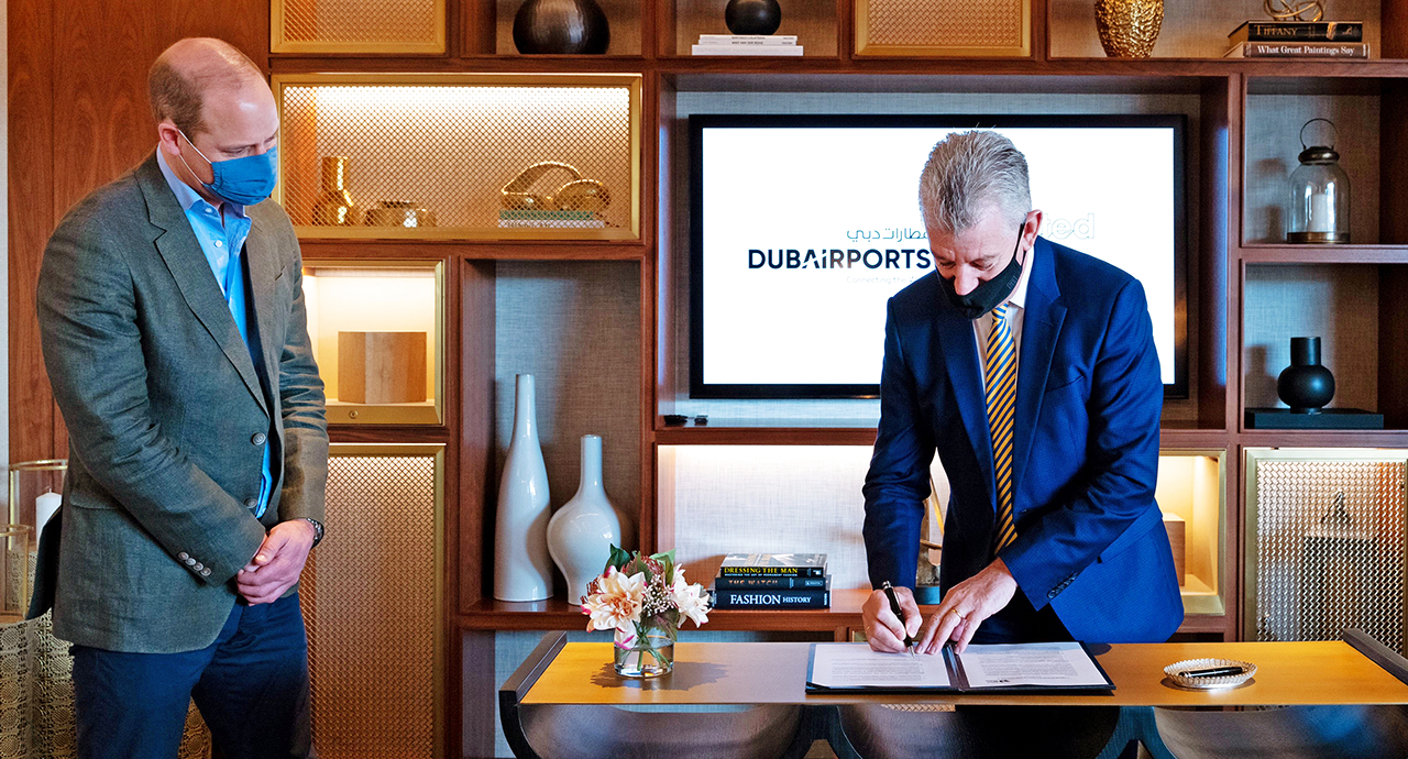 شهد سمو الشيخ أحمد بن سعيد آل مكتوم رئيس هيئة دبي للطيران الرئيس الأعلى لمجموعة طيران الإمارات رئيس مؤسسة مطارات دبي والأمير ويليام، دوق كامبريدج، مؤسس منظمة «متحدون من أجل الحياة البرية» توقيع مطارات دبي على «إعلان قصر باكنجهام» كدليل على دعمها لمنع التجارة غير المشروعة بالحياة البرية.