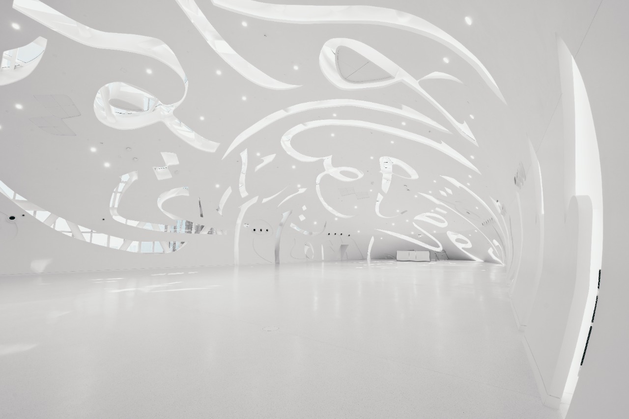 كذلك، يأتي استخدام الخط العربي في تصميم واجهة متحف المستقبل تمثيلاً لرؤية المتحف في المساهمة النوعية والفاعلة في استئناف الحضارة العربية، في عصرها الذهبي، التي صدرت علومها ومعارفها للبشرية بلغة الضاد.
