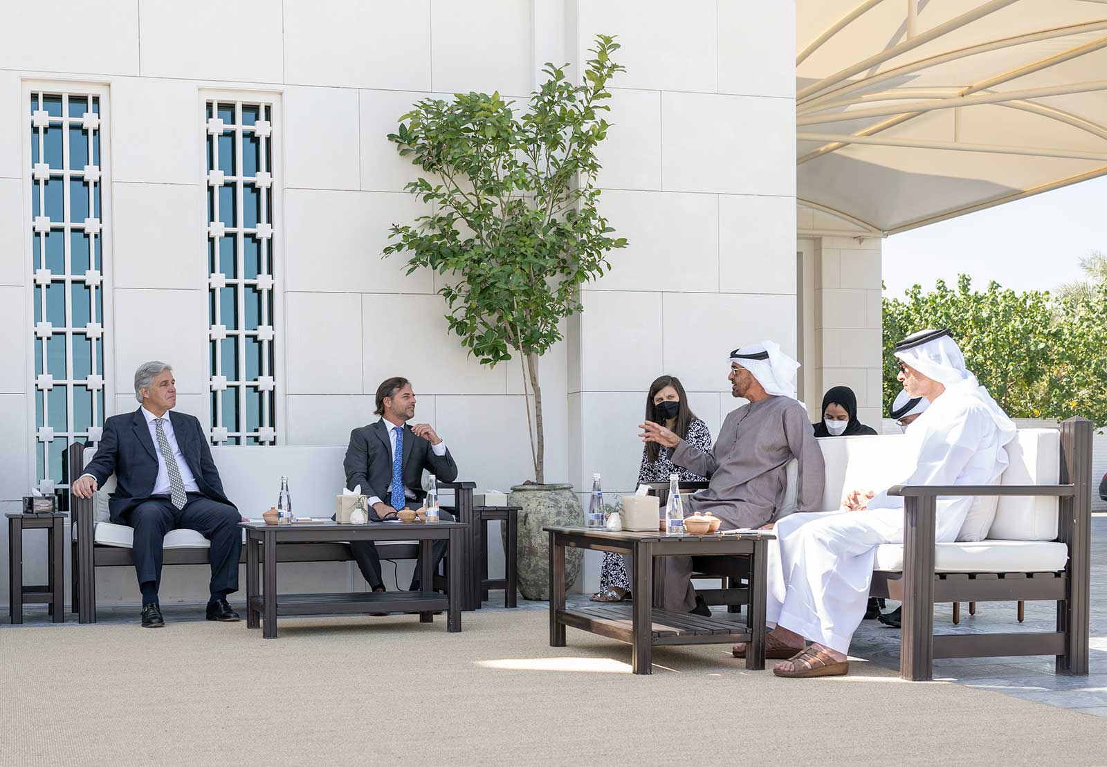 وأكد صاحب السمو الشيخ محمد بن زايد آل نهيان خلال اللقاء .. حرص دولة الإمارات على تعزيز علاقاتها الاقتصادية والتجارية والتنموية مع دول أميركا اللاتينية وفي مقدمتها جمهورية الأوروغواي الصديقة.