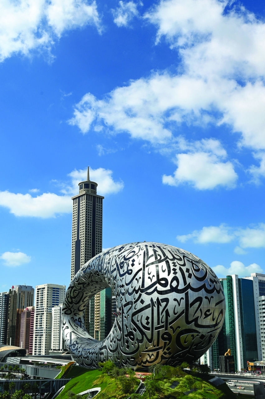 ويعد متحف المستقبل أحد أكثر الأيقونات المعمارية إبداعاً وتفرداً في العالم، من خلال تصميم ملهم، ذي دلالات رمزية وفنية وفلسفية وتاريخية، يجمع بين جمال الشكل وانسيابيته وشعريّته، ليكون قطعة من الخيال.