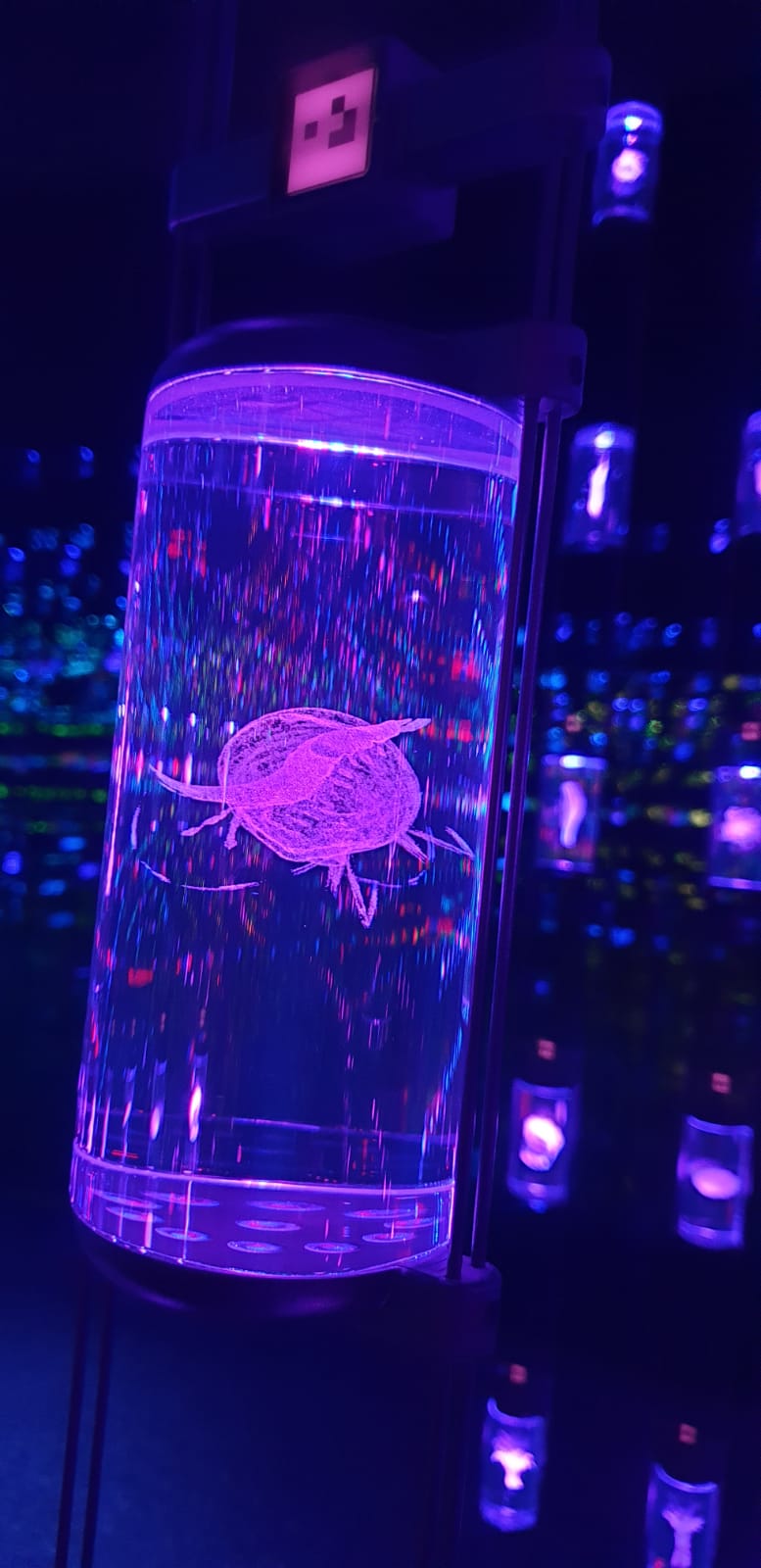 تم استخدام تقنية الهولوغرام من أجل تجسيد 2400 كائن حي عبر بصمتهم الوراثية في عبوات زجاجية عرضت ضمن تصميم رائع في قاعة كبيرة جذبت اهتمام الزوار.