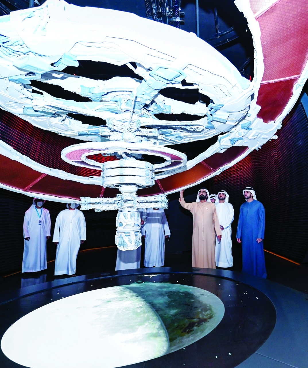 واطلع صاحب السمو الشيخ محمد بن راشد آل مكتوم على المحطة الفضائية المدارية «أمل OSS Hope»، في متحف المستقبل، والتي تم تصميمها على نحو يحاكي موطناً للإنسانية في الفضاء. وتأخذ المحطة زوار المتحف في رحلة افتراضية إلى الفضاء الخارجي، يكتشفون خلالها مختلف المهمات والأبحاث التي يتم تنفيذها على متن المحطة، وعند إنجاز المهمة بنجاح، يغادر الزوار الفضاء عائدين إلى الأرض ليكتشفوا صورة متخيلة لما ستصبح دبي والعالم عليه في العام 2071 مع الجهود المبذولة لاستعادة صحة النظام الطبيعي واستدامة موارد الكوكب.