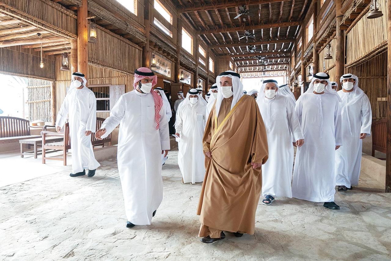 ثم انتقل صاحب السمو حاكم الشارقة إلى افتتاح السوق الواقع خلف الحصن، والذي تم بناؤه بالكامل من الدعون والأخشاب بتصميم متطور يراعي معايير السلامة والأمان دون تغيير النمط المعماري التراثي للبناء بالدعون.