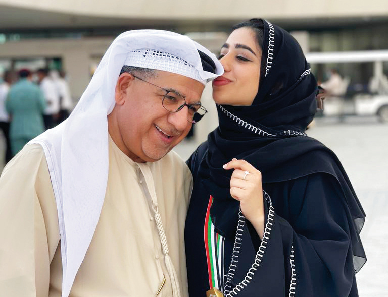 وأوضحت أنها جاءت، أمس، من المملكة المتحدة لتتوج في هذا العرس الجماعي، الذي يكرم المتميزين وأصحاب البصمات الرائدة، وفاجأت والدها بأنها من المكرمين.