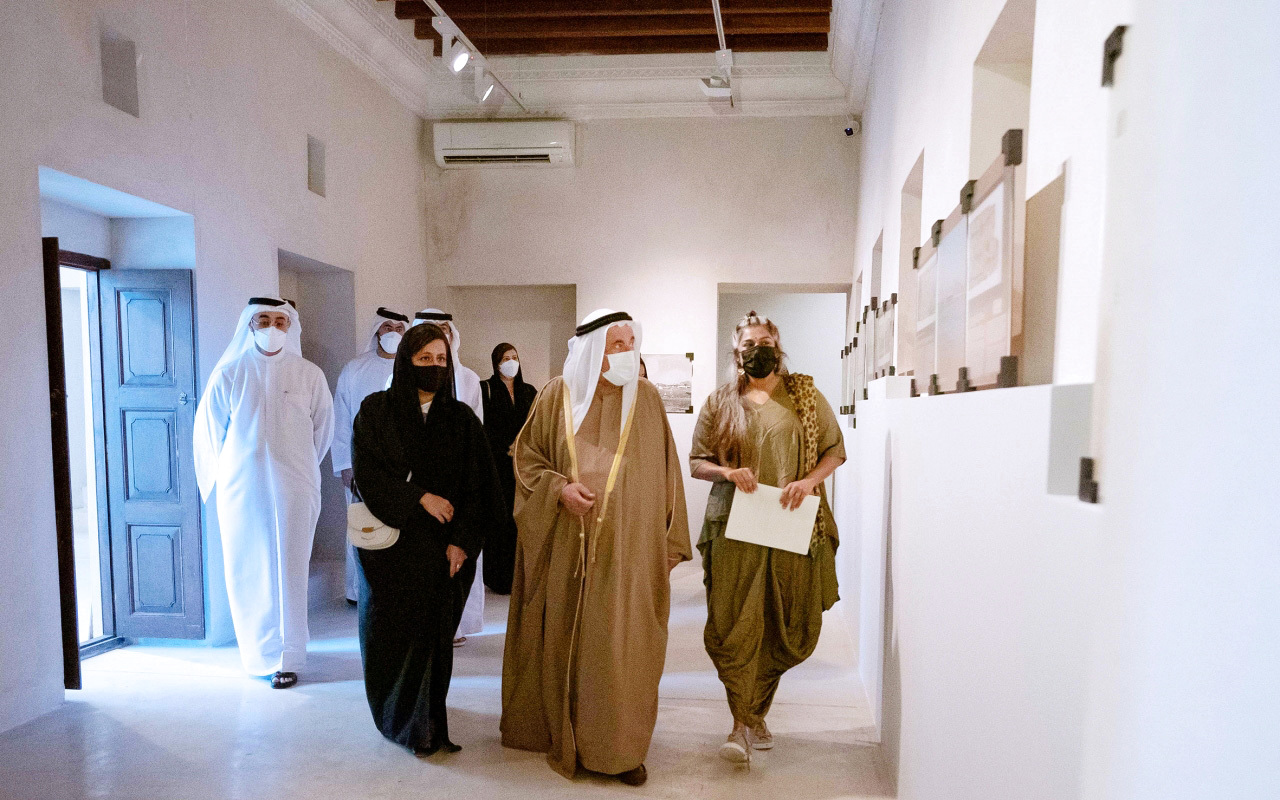 وخلال الجولة، تفضل صاحب السمو حاكم الشارقة بزيارة معرض «الرفيق قبل الطريق» من تقييم الشيخة حور بنت سلطان القاسمي، وذلك في بيت السركال بساحة الفنون.