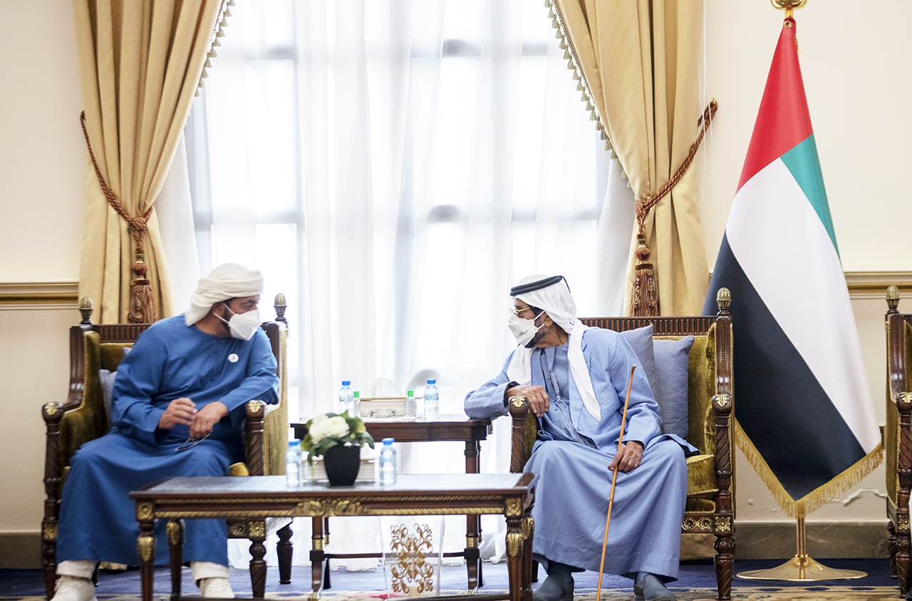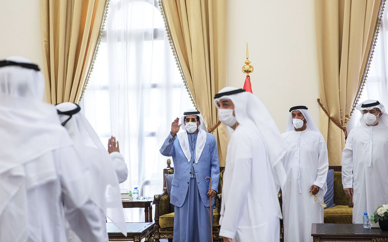 فيما تلقى سموهم واجب العزاء من الشيخ مروان بن راشد المعلا رئيس مجلس إدارة جمعية أم القيوين الخيرية.