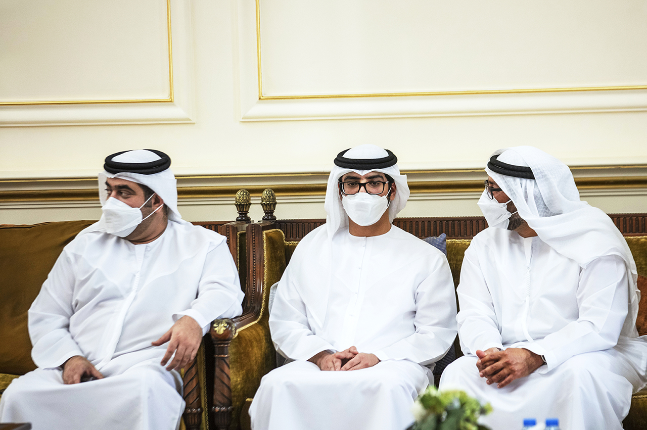 وقدم واجب العزاء إلى جانب سموه، الشيخ سلطان بن حمدان بن زايد آل نهيان سفير الدولة لدى مملكة البحرين، والشيخ محمد بن حمدان بن زايد آل نهيان،