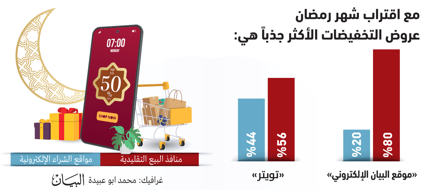 أكد مستطلعو «البيان» أنه مع اقتراب حلول شهر رمضان فإن منافذ البيع التقليدية تعتبر الأكثر جذباً لعروض التخفيضات، وذلك خلال الاستطلاع الأسبوعي الذي تجريه الصحيفة عبر موقعها الإلكتروني وصفحتها على موقع «تويتر».