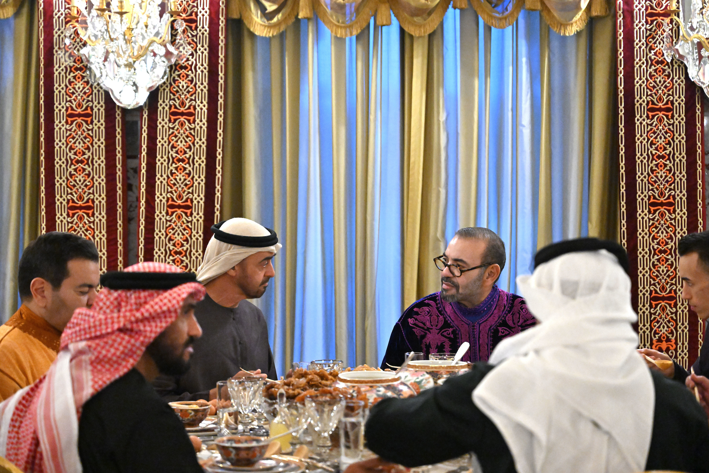 حضر صاحب السمو الشيخ محمد بن زايد آل نهيان، ولي عهد أبوظبي نائب القائد الأعلى للقوات المسلحة، مأدبة إفطار أقامها في الرباط الملك محمد السادس، ملك المملكة المغربية الشقيقة.