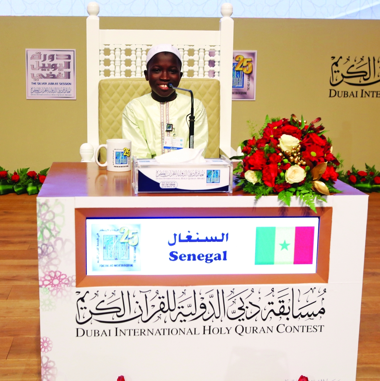 (البيان) التقت المتسابق السنغالي الحاج شيخ جاه، والذي أكد أن والده يعد حافظاً للقرآن الكريم، كما لديه شقيقان يحفظان القرآن الكريم كاملاً، إضافة إلى أن جده يعد من حفظة كتاب الله، حيث تم ترشيحه من السنغال، بعد أن نافس عدداً كبيراً من المتسابقين، وبالتالي، تأهل إلى المشاركة في جائزة دبي الدولية، والتي أضحت حلماً لكل حافظ لكتاب الله، لافتاً إلى أنه يحلم بعد حفظه كتاب الله في هذه السن المبكرة، أن يصبح داعية وعالماً في علوم القرآن الكريم والشريعة الإسلامية، كما أنه حالياً على مقاعد الدراسة في الصف الـ 4 في إحدى المدارس النظامية.