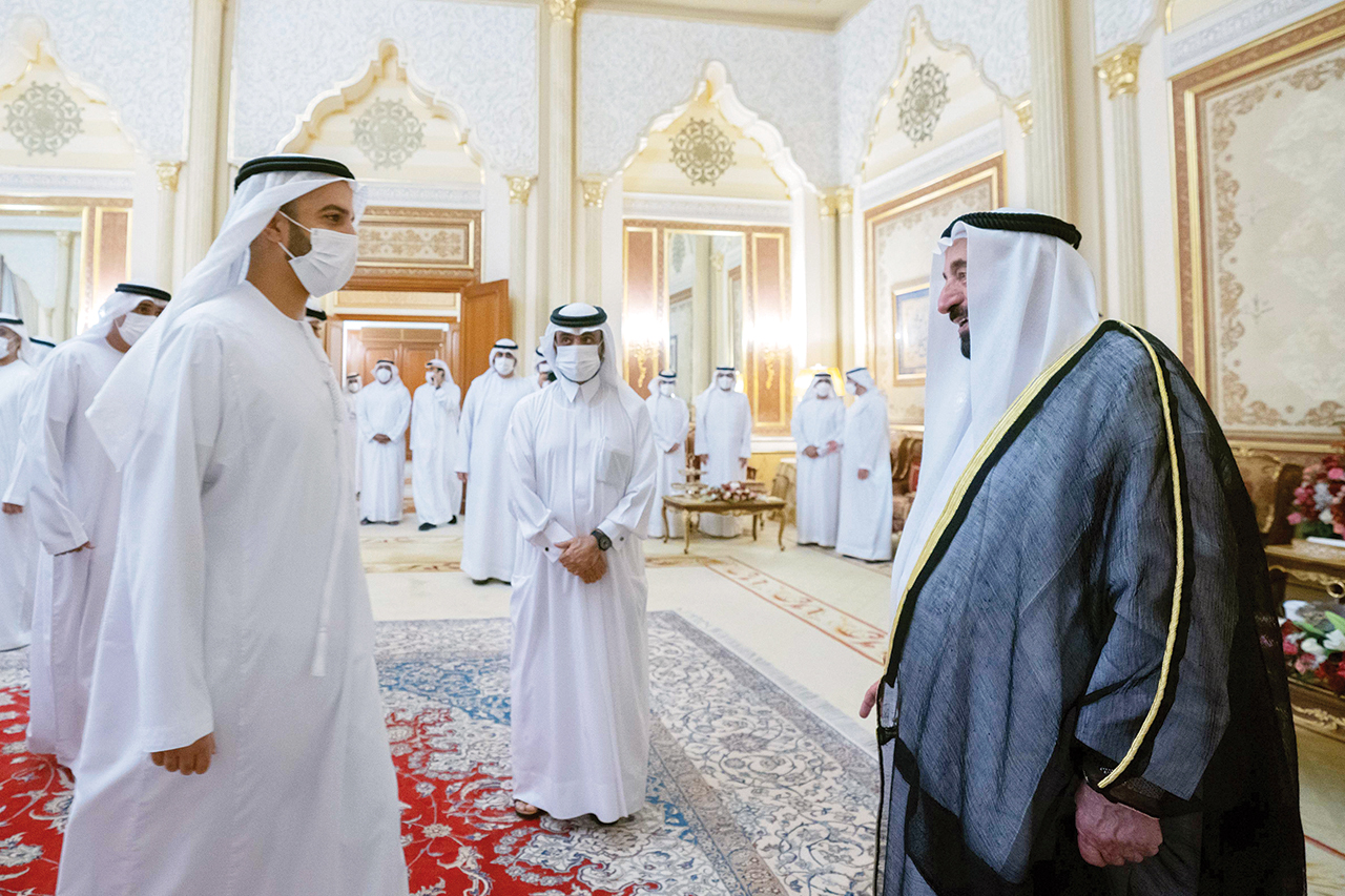 أيضاً استقبل صاحب السمو حاكم الشارقة، أمس، وفد اتحاد الإمارات لكرة القدم برئاسة الشيخ راشد بن حميد النعيمي رئيس الاتحاد، وذلك في قصر البديع العامر.