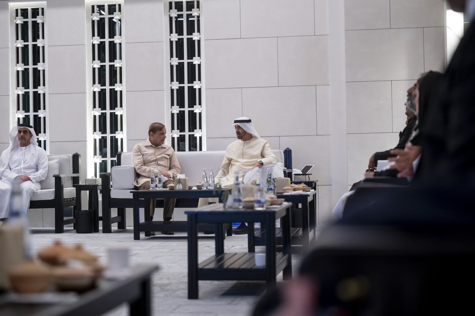 من جانبه عبر دولة شهباز شريف رئيس وزراء جمهورية باكستان الإسلامية الصديقة .. عن شكره لصاحب السمو الشيخ محمد بن زايد آل نهيان لحسن الاستقبال والتهنئة بتولي منصب رئيس الوزراء .. منوهاً بدعم الإمارات الكبير لبلاده في المجال التنموي.