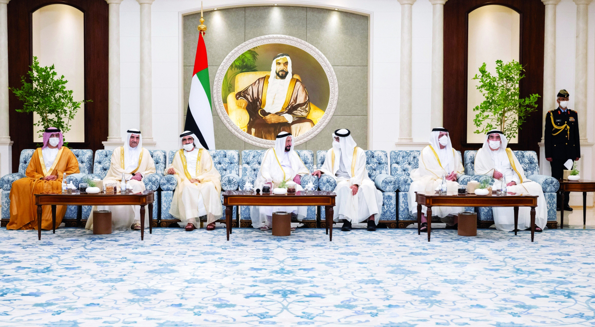 جاء ذلك، خلال استقبال صاحب السمو الشيخ محمد بن راشد آل مكتوم نائب رئيس الدولة رئيس مجلس الوزراء حاكم دبي، رعاه الله، وصاحب السمو الشيخ محمد بن زايد آل نهيان ولي عهد أبوظبي نائب القائد الأعلى للقوات المسلحة، في قصر المشرف، أصحاب السمو الشيوخ أعضاء المجلس الأعلى للاتحاد حكام الإمارات، وسمو أولياء العهود ونواب الحكام.