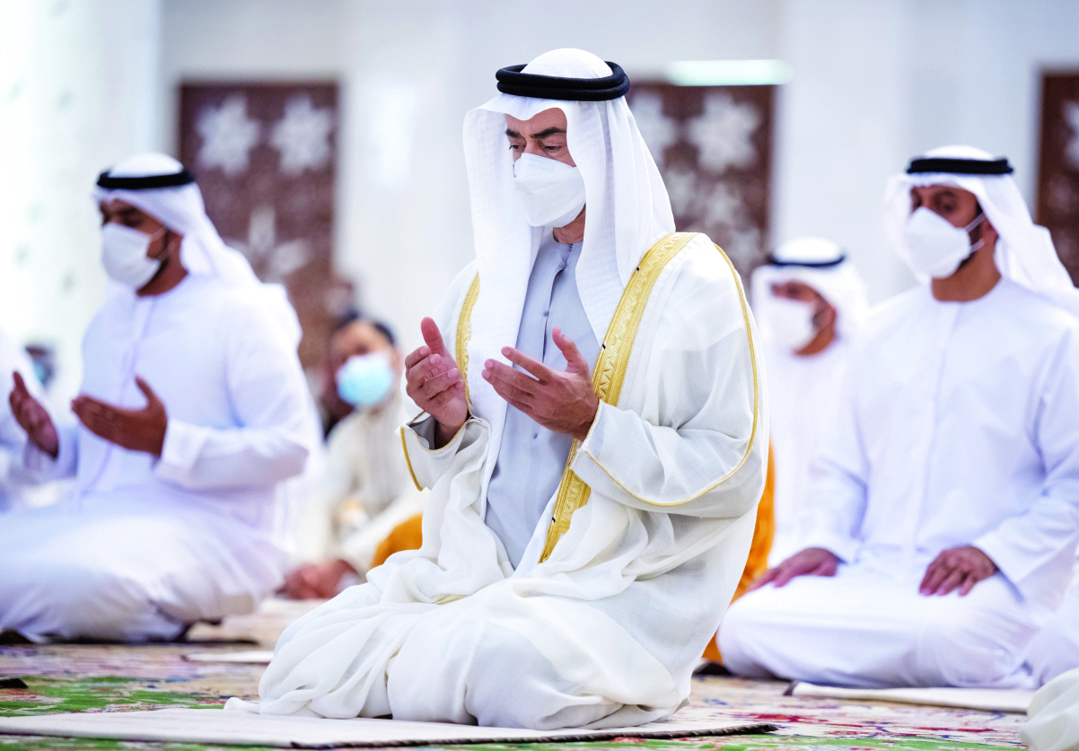 أدى صاحب السمو الشيخ محمد بن زايد آل نهيان ولي عهد أبوظبي نائب القائد الأعلى للقوات المسلحة، صلاة عيد الفطر المبارك مع جموع المصلين في جامع الشيخ زايد الكبير في أبوظبي، كما أدى الصلاة إلى جانب سموه كل من، سمو الشيخ سرور بن محمد آل نهيان، وسمو الشيخ هزاع بن زايد آل نهيان نائب رئيس المجلس التنفيذي لإمارة أبوظبي، وسمو الشيخ سعيد بن زايد آل نهيان ممثل حاكم أبوظبي، وسمو الشيخ نهيان بن زايد آل نهيان رئيس مجلس أمناء مؤسسة زايد بن سلطان آل نهيان للأعمال الخيرية والإنسانية، والفريق سمو الشيخ سيف بن زايد آل نهيان نائب رئيس مجلس الوزراء وزير الداخلية، وسمو الشيخ طحنون بن زايد آل نهيان مستشار الأمن الوطني، وسمو الشيخ منصور بن زايد آل نهيان نائب رئيس مجلس الوزراء وزير شؤون الرئاسة، وسمو الشيخ حامد بن زايد آل نهيان عضو المجلس التنفيذي لإمارة أبوظبي، وسمو الشيخ عبدالله بن زايد آل نهيان وزير الخارجية والتعاون الدولي، وسمو الشيخ خالد بن زايد آل نهيان رئيس مجلس إدارة مؤسسة زايد العليا لأصحاب الهمم، وسمو الشيخ خالد بن محمد بن زايد آل نهيان عضو المجلس التنفيذي رئيس مكتب أبوظبي التنفيذي، وسمو الشيخ حمدان بن محمد بن زايد آل نهيان، ومعالي الشيخ نهيان بن مبارك آل نهيان وزير التسامح والتعايش، إلى جانب عدد من الشيوخ وكبار المسؤولين.
