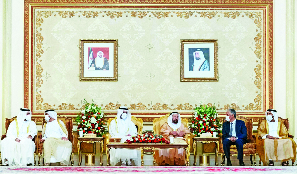 حضر الاستقبال كل من الشيخ سعود بن خالد بن سلطان القاسمي المستشار بمكتب سمو الحاكم، والشيخ محمد بن سعود القاسمي رئيس دائرة المالية المركزية، والشيخ خالد بن عبد الله القاسمي رئيس هيئة الشارقة للموانئ والجمارك والمناطق الحرة، والشيخ سالم بن عبد الرحمن القاسمي رئيس مكتب سمو الحاكم، والشيخ محمد بن حميد القاسمي رئيس دائرة الإحصاء والتنمية المجتمعية، وراشد أحمد بن الشيخ رئيس الديوان الأميري، ورؤساء ومديري الدوائر والمؤسسات المحلية بالشارقة.