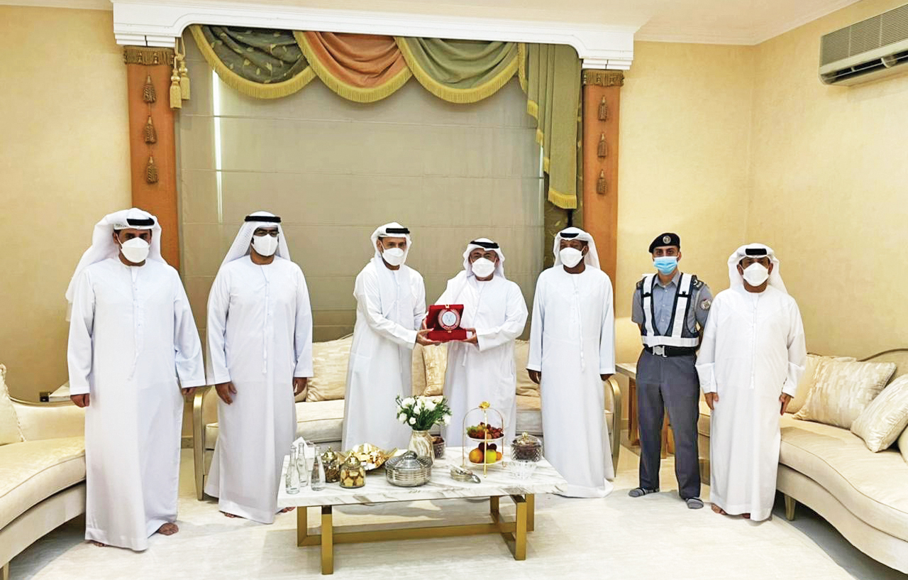 قام وفد من إدارة مرور منطقة العين بمديرية المرور والدوريات في شرطة أبوظبي بالقيادة العامة لشرطة أبوظبي، بزيارة معايدة لمنزلي العميد متقاعد عبيد نخيرة الظاهري، والعميد متقاعد حمد ناصر البلوشي، حيث هنأ الوفد العميدين المتقاعدين بمناسبة عيد الفطر السعيد.