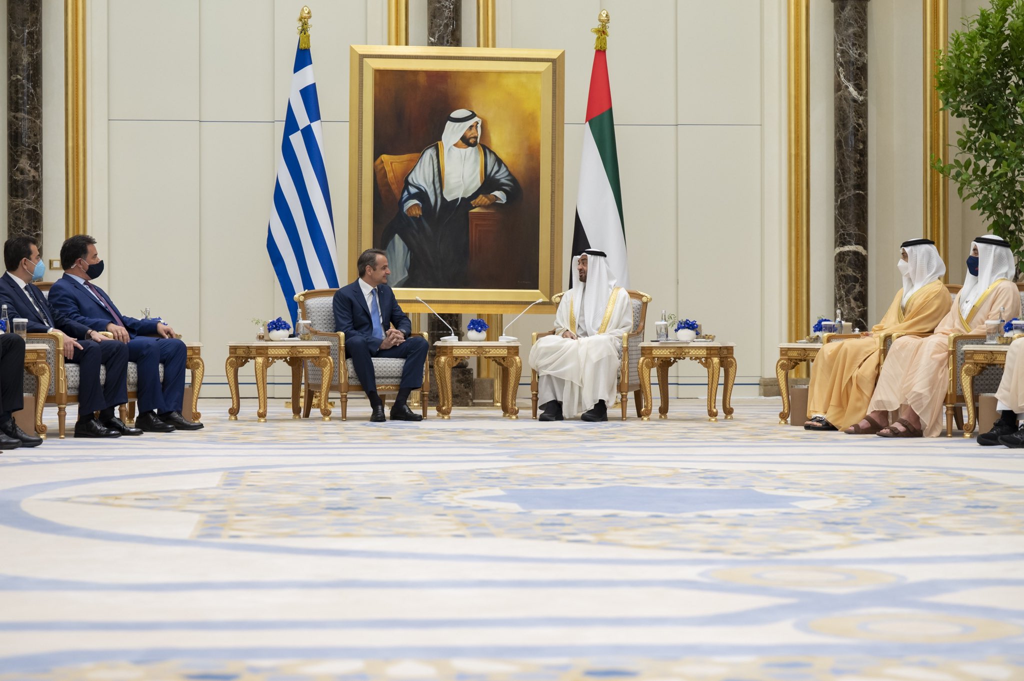 شهد صاحب السمو الشيخ محمد بن زايد آل نهيان ولي عهد أبوظبي نائب القائد الأعلى للقوات المسلحة اليوم ومعالي كيرياكوس ميتسوتاكيس رئيس وزراء جمهورية اليونان تبادل عدد من الاتفاقيات ومذكرات التفاهم بين عدد من الجهات في دولة الإمارات العربية المتحدة وجمهورية اليونان تشمل مجالات الاستثمار والطاقة المتجددة والصحة و والصناعة والتقنيات المتقدمة وغيرها من الجوانب الحيوية التي تحظى باهتمام البلدين.