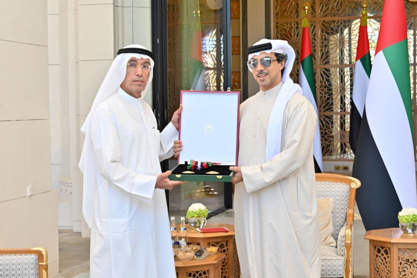 وسلم سمو الشيخ منصور بن زايد آل نهيان سعادته الوسام خلال مراسم أقيمت اليوم في قصر الوطن.