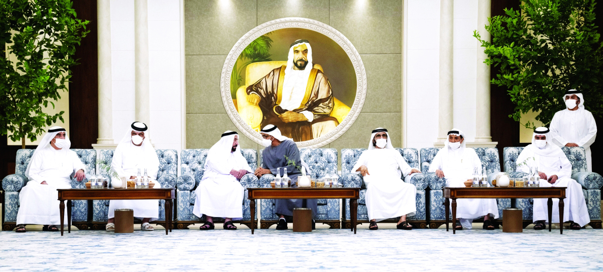 تقبل صاحب السمو الشيخ محمد بن زايد آل نهيان رئيس الدولة، حفظه الله، أمس، التعازي في وفاة فقيد الوطن الكبير، الشيخ خليفة بن زايد آل نهيان، رحمه الله، من صاحب السمو الشيخ محمد بن راشد آل مكتوم نائب رئيس الدولة رئيس مجلس الوزراء حاكم دبي، رعاه الله، وصاحب السمو الشيخ الدكتور سلطان بن محمد القاسمي عضو المجلس الأعلى حاكم الشارقة، وصاحب السمو الشيخ حميد بن راشد النعيمي عضو المجلس الأعلى حاكم عجمان، وصاحب السمو الشيخ حمد بن محمد الشرقي عضو المجلس الأعلى حاكم الفجيرة، وصاحب السمو الشيخ سعود بن راشد المعلا عضو المجلس الأعلى حاكم أم القيوين، وصاحب السمو الشيخ سعود بن صقر القاسمي عضو المجلس الأعلى حاكم رأس الخيمة.