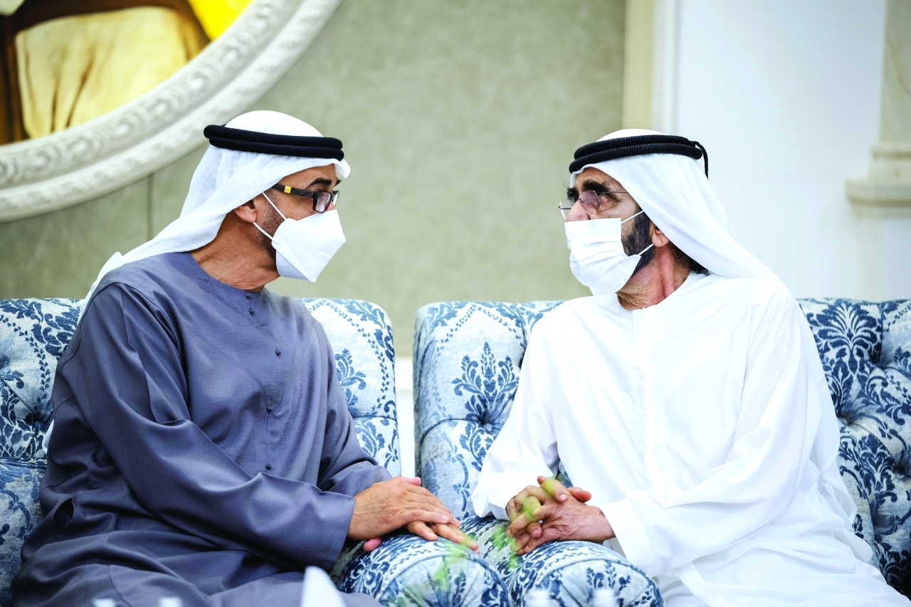 محمد بن زايد يتقبل تعازي محمد بن راشد والحكام في فقيد الوطن الشيخ خليفة