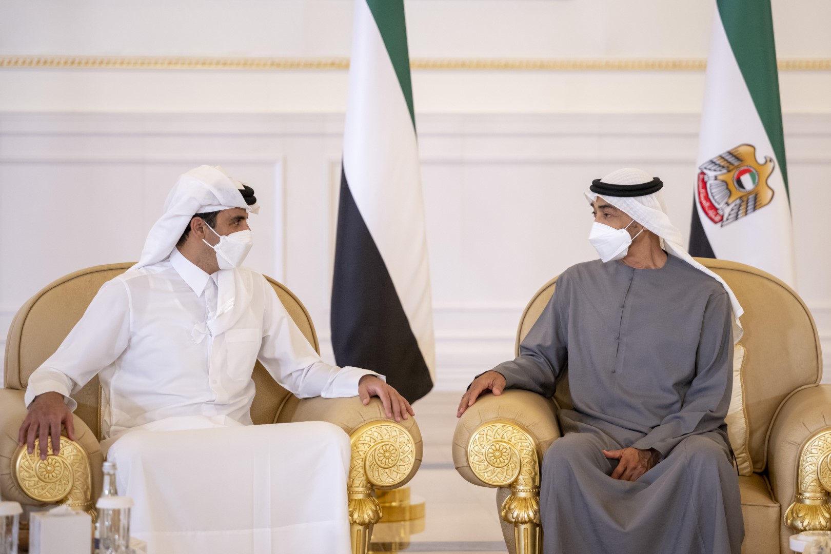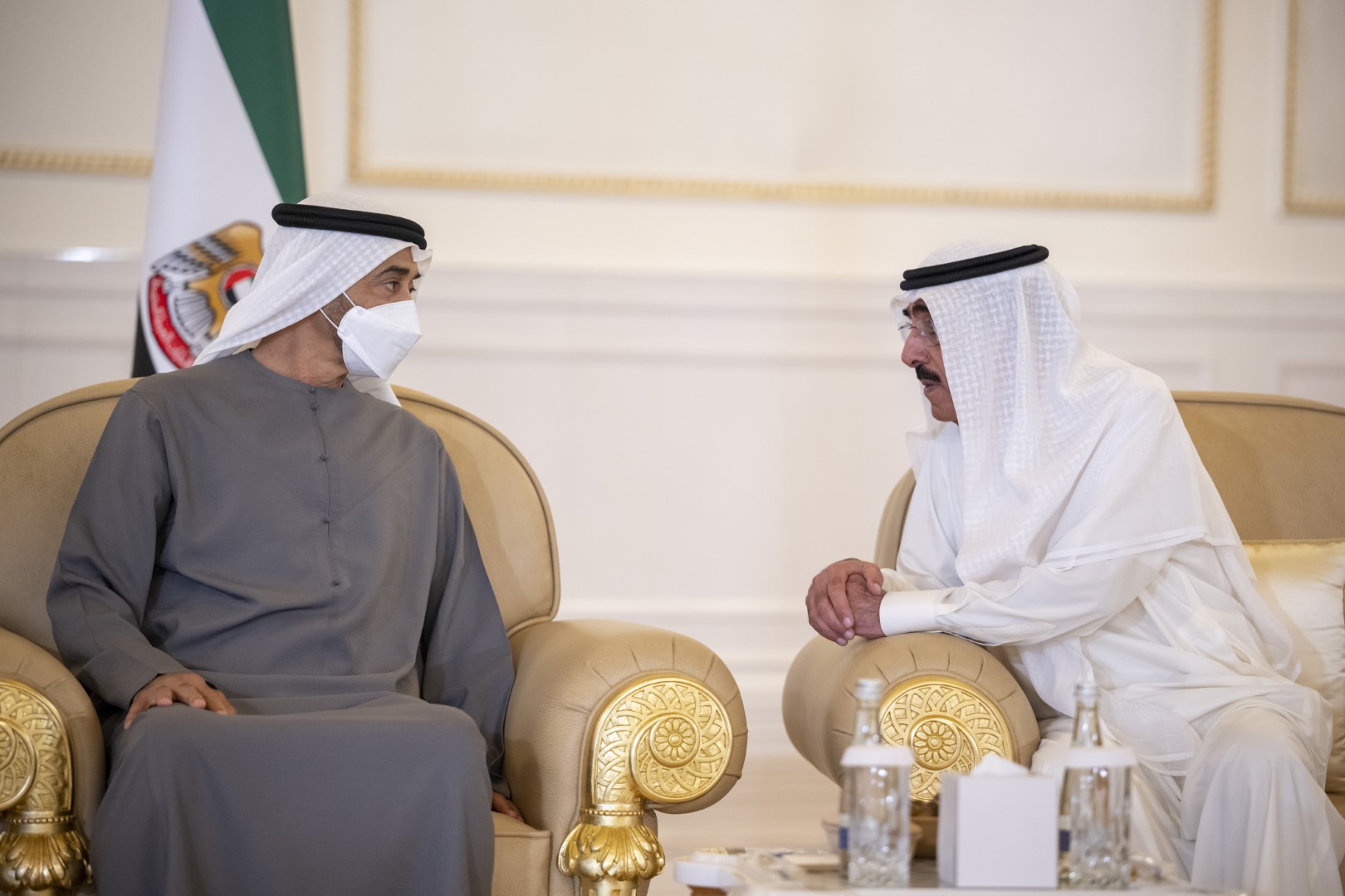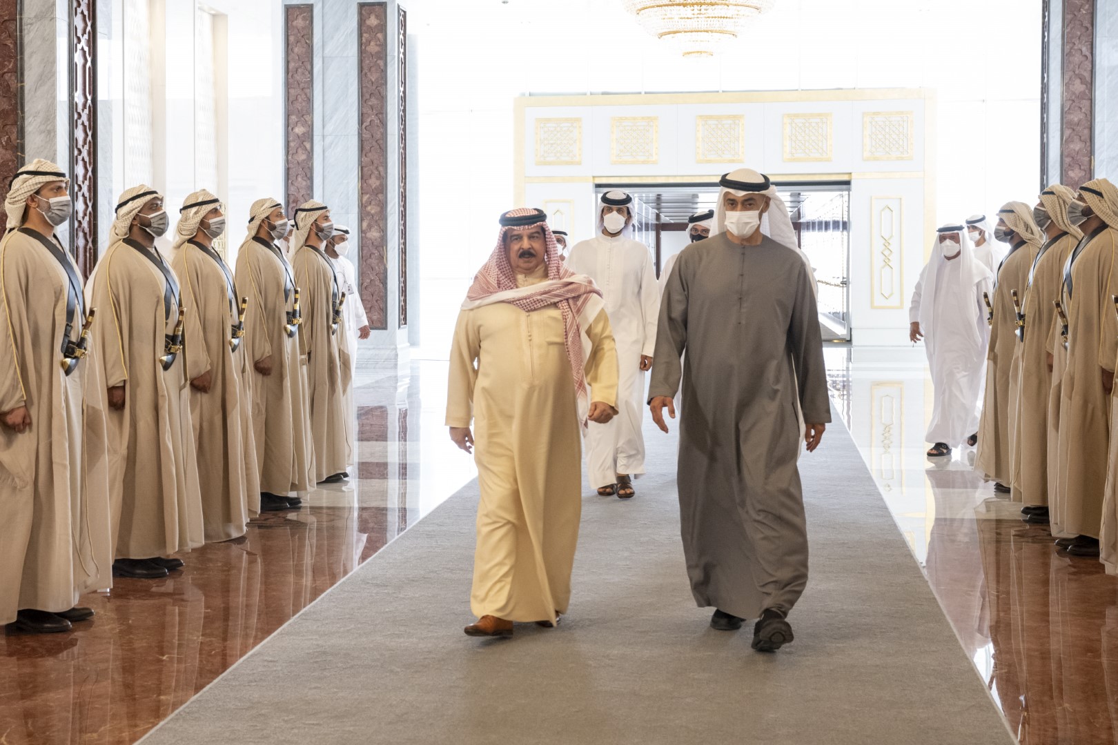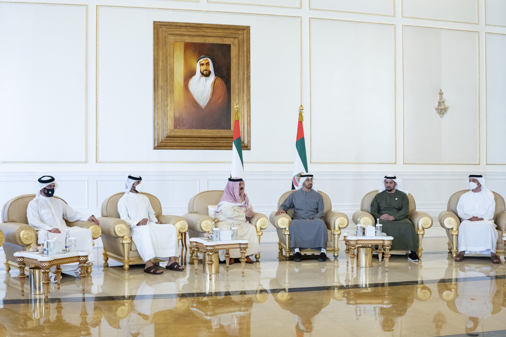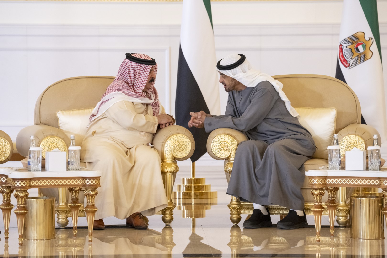 تقبل صاحب السمو الشيخ محمد بن زايد آل نهيان رئيس الدولة " حفظه الله " اليوم التعازي والمواساة في وفاة فقيد الوطن الكبير الشيخ خليفة بن زايد آل نهيان "رحمه الله"..من أخيه صاحب الجلالة الملك حمد بن عيسى آل خليفة عاهل مملكة البحرين الشقيقة وأخيه صاحب السمو الشيخ تميم بن حمد آل ثاني أمير دولة قطر الشقيقة.