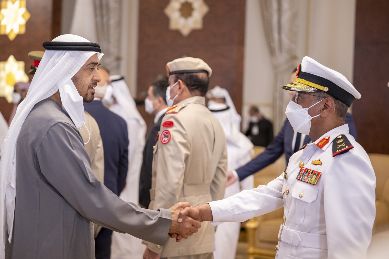وتقبل التعازي إلى جانب صاحب السمو الشيخ محمد بن زايد آل نهيان كل من .. سمو الشيخ حمدان بن زايد آل نهيان ممثل الحاكم في منطقة الظفرة وسمو الشيخ هزاع بن زايد آل نهيان نائب رئيس المجلس التنفيذي لإمارة أبو ظبي والفريق سمو الشيخ سيف بن زايد آل نهيان نائب رئيس مجلس الوزراء وزير الداخلية وسمو الشيخ طحنون بن زايد آل نهيان مستشار الأمن الوطني وسمو الشيخ منصور بن زايد آل نهيان نائب رئيس مجلس الوزراء وزير شؤون الرئاسة وسمو الشيخ عبدالله بن زايد آل نهيان وزير الخارجية والتعاون الدولي وسمو الشيخ الدكتور سلطان بن خليفة آل نهيان مستشار صاحب السمو رئيس الدولة وسمو الشيخ خالد بن محمد بن زايد آل نهيان عضو المجلس التنفيذي رئيس مكتب أبوظبي التنفيذي وعدد من الشيوخ.