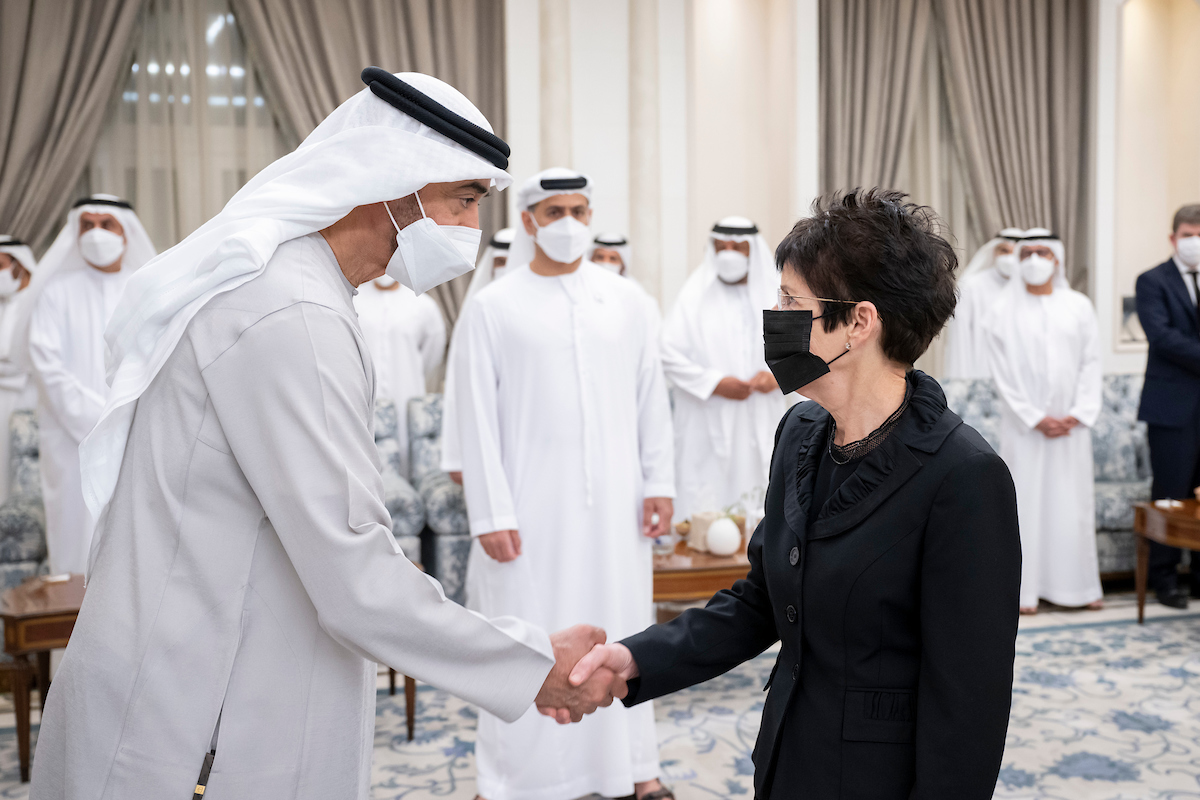 من جانبه أعرب صاحب السمو الشيخ محمد بن زايد آل نهيان عن جزيل شكره وتقديره لأصحاب الجلالة والفخامة والسمو والمعالي لما أبدوه من مشاعر صادقة تجاه دولة الإمارات وشعبها في فقيدهم .. كما توجه سموه بالشكر والتقدير لما عبروا عنه من التهاني والأمنيات بانتخابه رئيساً للدولة متمنياً للجميع موفور الصحة والعافية ولشعوبهم الشقيقة والصديقة مزيداً من التقدم والازدهار ودوام نعم الأمن والأمان والاستقرار.