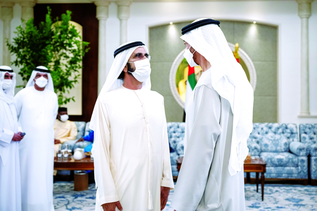 وتقبل التعازي إلى جانب صاحب السمو الشيخ محمد بن زايد آل نهيان كل من، صاحب السمو الشيخ محمد بن راشد آل مكتوم، نائب رئيس الدولة رئيس مجلس الوزراء حاكم دبي، رعاه الله، وصاحب السمو الشيخ حمد بن محمد الشرقي، عضو المجلس الأعلى حاكم الفجيرة، وصاحب السمو الشيخ سعود بن صقر القاسمي، عضو المجلس الأعلى حاكم رأس الخيمة، وسمو الشيخ حمدان بن محمد بن راشد آل مكتوم، ولي عهد دبي، وسمو الشيخ مكتوم بن محمد بن راشد آل مكتوم، نائب حاكم دبي نائب رئيس مجلس الوزراء وزير المالية، وسمو الشيخ محمد بن سعود بن صقر القاسمي، ولي عهد رأس الخيمة، وسمو الشيخ طحنون بن محمد آل نهيان ممثل حاكم أبوظبي في منطقة العين، وسمو الشيخ سيف بن محمد آل نهيان وسمو الشيخ سرور بن محمد آل نهيان وسمو الشيخ سعيد بن زايد آل نهيان ممثل حاكم أبوظبي، وسمو الشيخ نهيان بن زايد آل نهيان رئيس مجلس أمناء مؤسسة زايد بن سلطان آل نهيان للأعمال الخيرية والإنسانية، والفريق سمو الشيخ سيف بن زايد آل نهيان نائب رئيس مجلس الوزراء وزير الداخلية، وسمو الشيخ طحنون بن زايد آل نهيان مستشار الأمن الوطني، وسمو الشيخ منصور بن زايد آل نهيان نائب رئيس مجلس الوزراء وزير شؤون الرئاسة، وسمو الشيخ حامد بن زايد آل نهيان عضو المجلس التنفيذي لإمارة أبوظبي، وسمو الشيخ ذياب بن زايد آل نهيان، وسمو الشيخ عبدالله بن زايد آل نهيان وزير الخارجية والتعاون الدولي، وسمو الشيخ خالد بن زايد آل نهيان رئيس مجلس إدارة مؤسسة زايد العليا لأصحاب الهمم، وسمو الشيخ الدكتور سلطان بن خليفة آل نهيان مستشار صاحب السمو رئيس الدولة، وسمو الشيخ محمد بن خليفة آل نهيان عضو المجلس التنفيذي لإمارة أبوظبي، وسمو الشيخ خالد بن محمد بن زايد آل نهيان عضو المجلس التنفيذي رئيس مكتب أبوظبي التنفيذي، وسمو الشيخ ذياب بن محمد بن زايد آل نهيان رئيس ديوان ولي عهد أبوظبي وعدد من الشيوخ.