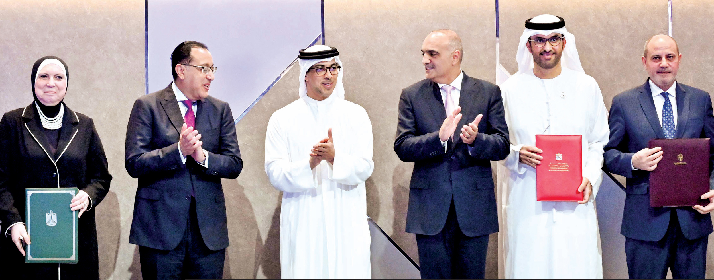 تم توقيع الشراكة بحضور سمو الشيخ منصور بن زايد آل نهيان، والدكتور بشر الخصاونة، رئيس الوزراء الأردني، والدكتور مصطفى مدبولي، رئيس مجلس الوزراء المصري، وقام بالتوقيع عليها كل من: معالي الدكتور سلطان بن أحمد الجابر وزير الصناعة والتكنولوجيا المتقدمة، ويوسف الشمالي، وزير الصناعة والتجارة الأردني، والدكتورة نيفين جامع، وزيرة التجارة والصناعة المصرية.