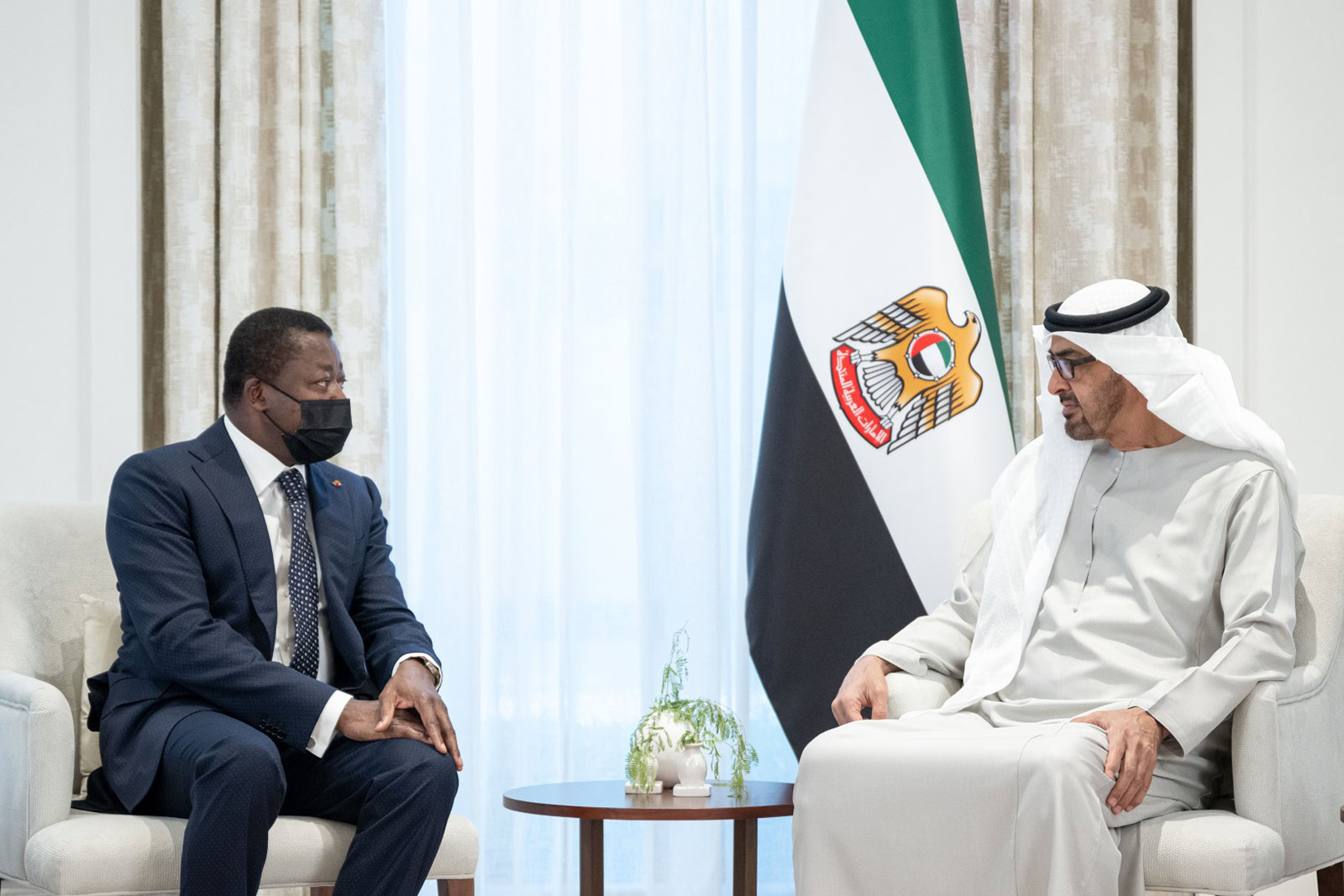 ورحب صاحب السمو رئيس الدولة بزيارة فخامة رئيس توغو الذي قدم تعازيه ومواساته إلى سموه وشعب دولة الإمارات في وفاة المغفور له الشيخ خليفة بن زايد آل نهيان "رحمه الله" مشيداً بدور الفقيد في مسيرة التنمية الحضارية الشاملة التي تشهدها دولة الإمارات.
