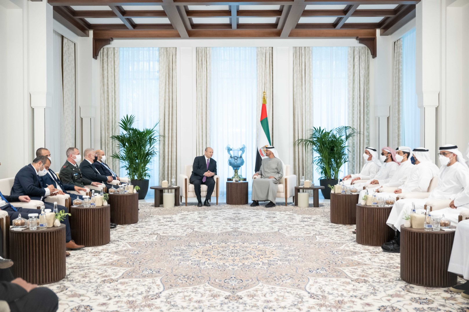 استقبل صاحب السمو الشيخ محمد بن زايد آل نهيان رئيس الدولة "حفظه الله" اليوم - في قصر الشاطئ - معالي نفتالي بينيت رئيس وزراء إسرائيل.