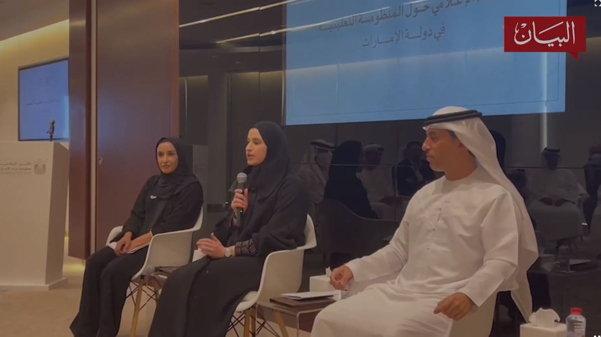 ناقش وزراء التعليم في الإمارات، معالي الدكتور أحمد بن عبدالله حميد بالهول الفلاسي وزير للتربية والتعليم، ومعالي سارة الأميري وزيرة دولة للتعليم العام والتكنولوجيا المتقدمة ومعالي سارة المسلّم وزيرة دولة للتعليم المبكر، الهيكلية الجديدة للتعليم في الإمارات مع رؤساء الصحف المحلية وذلك خلال "اللقاء الإعلامي حول المنظومة التعليمية في الإمارات" الذي نظمه المكتب الإعلامي لحكومة الإمارات.