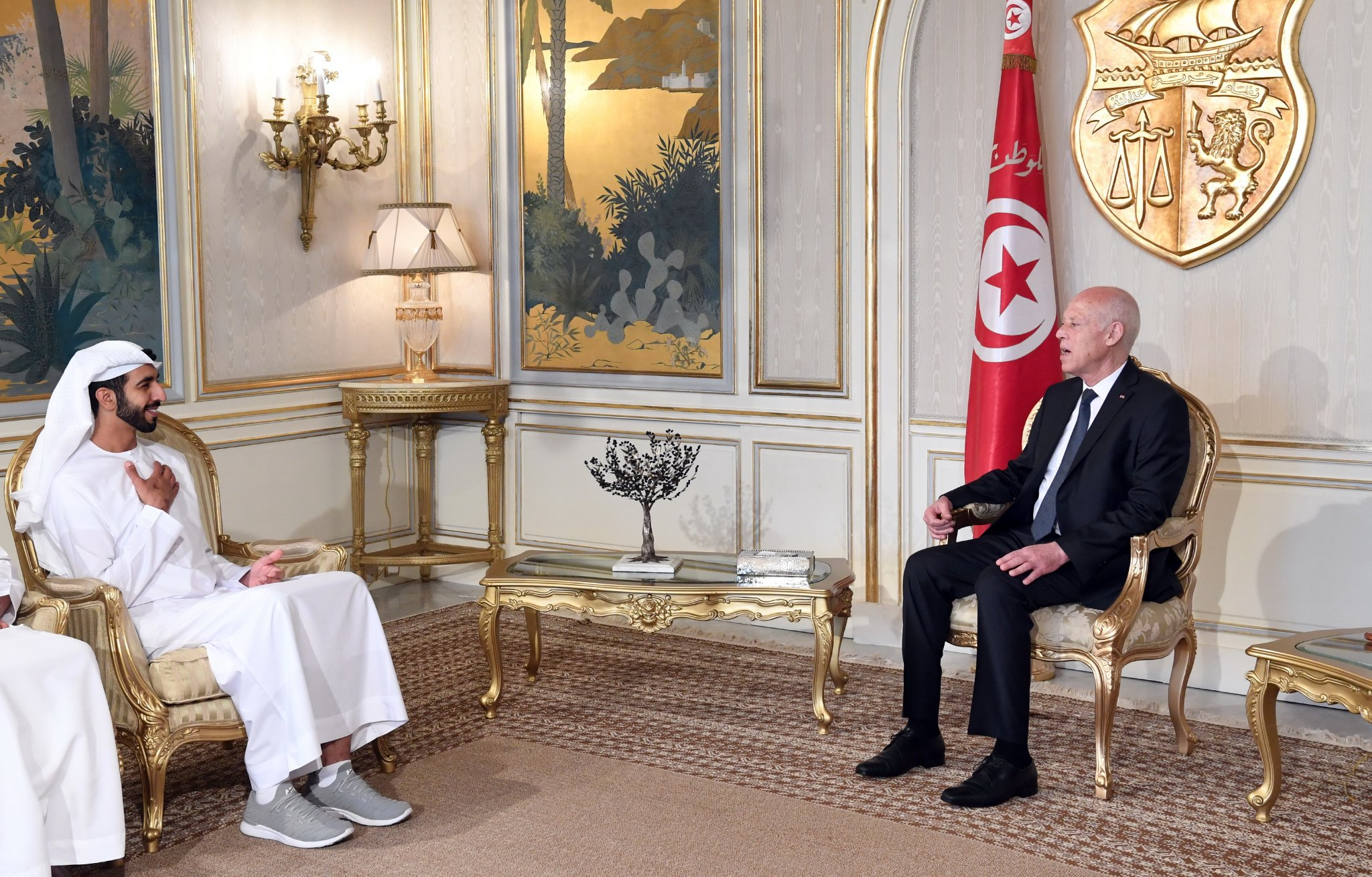 وجدّد الرئيس التونسي شكره لدولة الإمارات على ما تُبديه من حرص على دعم تونس في مختلف المجالات والوقوف إلى جانبها، انطلاقاً من إيمان مشترك بعمق العلاقات التاريخية القائمة بين البلدين، وبضرورة تعزيز هذه الروابط الأخوية وتنويعها خدمة لمصلحة الشعبين الشقيقين، حسب بيان للرئاسة التونسية.