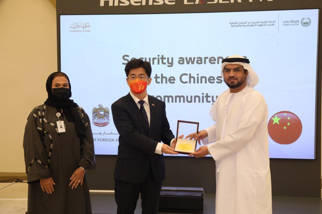 جاء ذلك خلال فعاليات ورشة الثقافة الأمنية المُخصصة للجالية الصينية في إمارة دبي، في نادي ضباط شرطة دبي. بحضور لي شيوي هانغ القنصل العام لجمهورية الصين الشعبية، والعميد جمال سالم الجلاف، مدير الإدارة العامة للتحريات والمباحث الجنائية في شرطة دبي، بحضور فتحية البستكي ممثلة مكتب وزارة الخارجية والتعاون الدولي في دبي، والعميد محمد عقيل أهلي نائب مدير الإدارة العامة للتحريات والمباحث الجنائية لشؤون البحث والتحري،