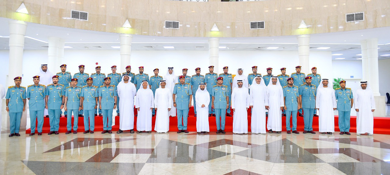 وسعيد عبدالله المطوع عضو المجلس الوطني السابق، وعبدالله بن خادم مدير جمعية الشارقة الخيرية وسلطان بن بطي المهيري عضو مجلس إدارة أكاديمية العلوم الشرطية، وعدد من الضباط وصف الضباط بالقيادة.