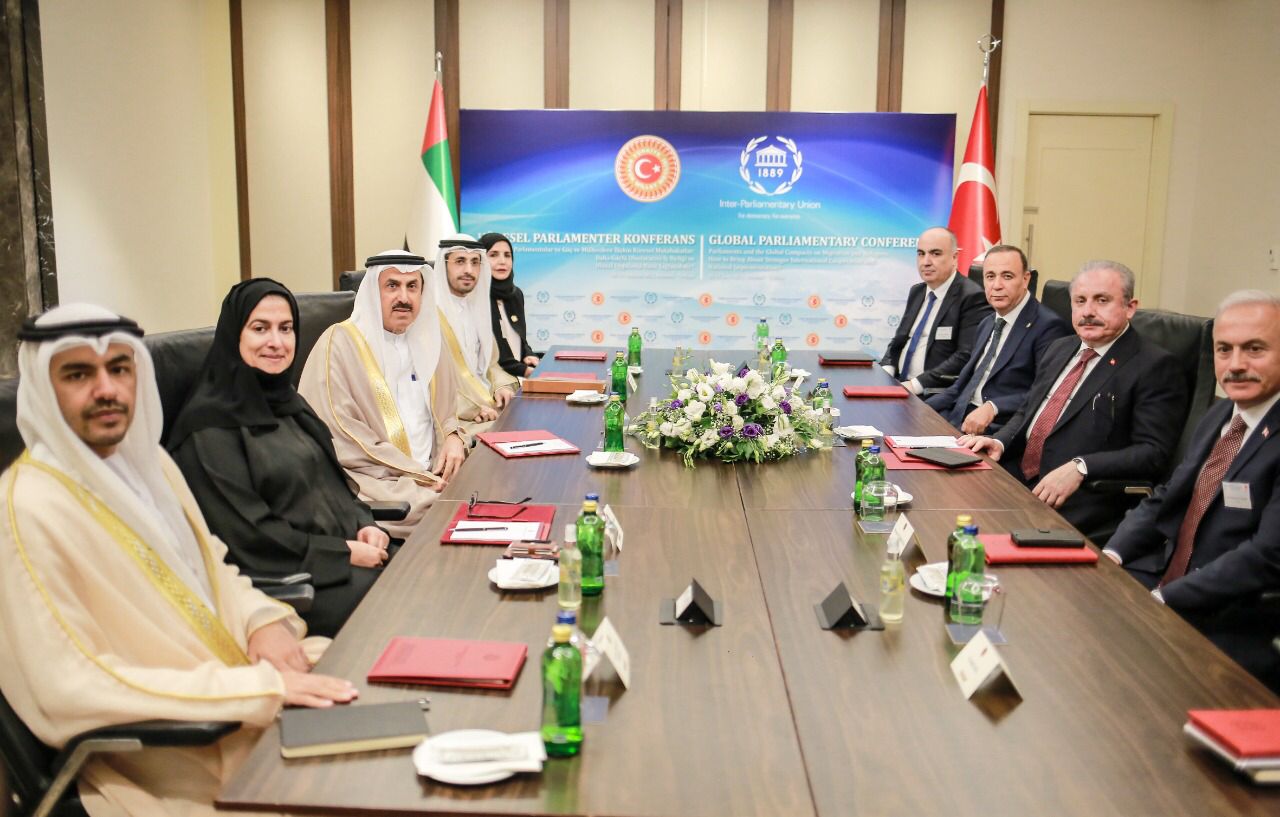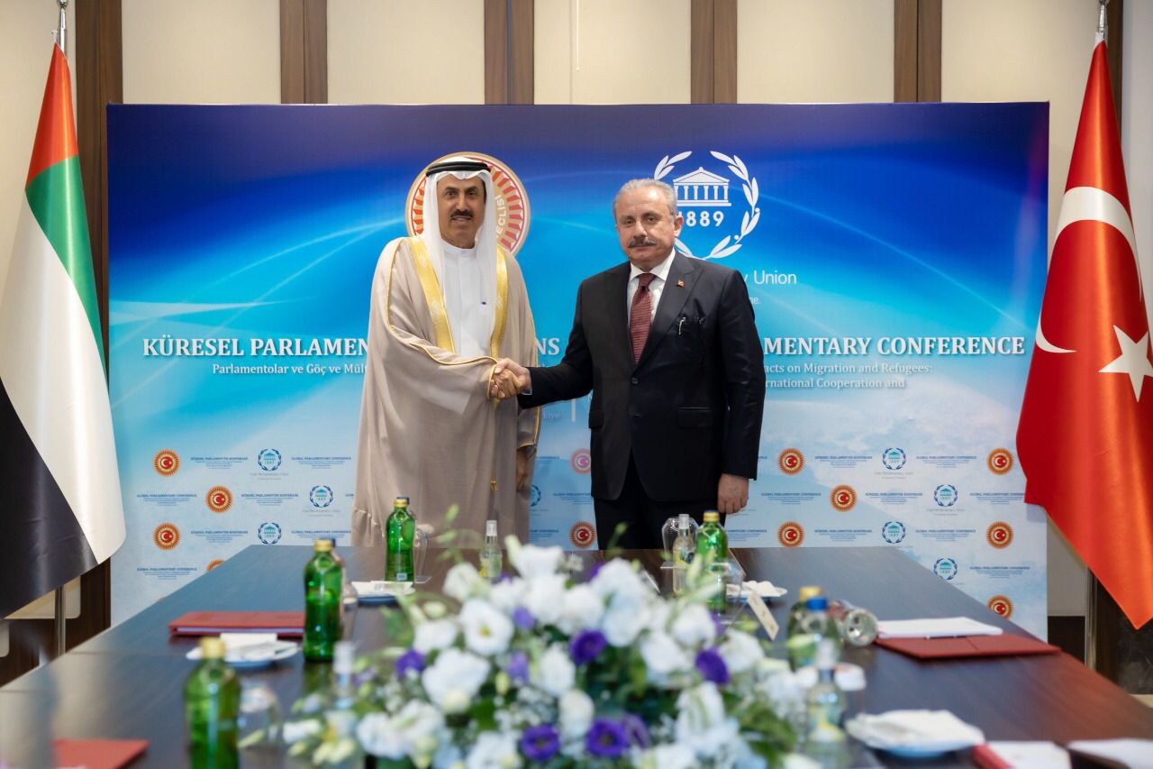 التقى معالي صقر غباش رئيس المجلس الوطني الاتحادي معالي البروفيسور مصطفى شنطوب، رئيس الجمعية الوطنية الكبرى لجمهورية تركيا "البرلمان" علي هامش أعمال المؤتمر البرلماني العالمي المعني بالهجرة المنعقد حاليا في مدينة إسطنبول .