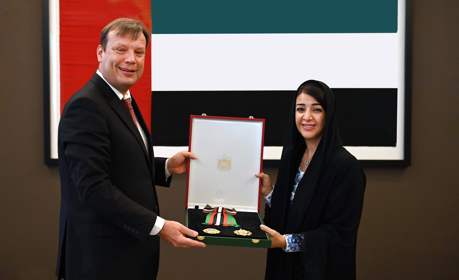 وقلدت معالي ريم بنت إبراهيم الهاشمي وزيرة دولة لشؤون التعاون الدولي، سعادته الوسام خلال لقاء عقد في ديوان عام وزارة الخارجية والتعاون الدولي في أبوظبي.