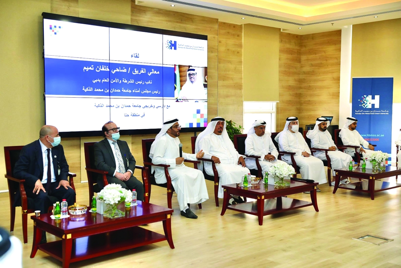 واطلع الفريق ضاحي خلفان تميم، خلال لقائه بالدارسين والخريجين على نشاط الجامعة في منطقة حتا، مؤكداً أهمية دور الجامعة في توفير الدعم التعليمي اللازم للدارسين في منطقة حتا، تماشياً مع توجيهات صاحب السمو الشيخ محمد بن راشد آل مكتوم، نائب رئيس الدولة رئيس مجلس الوزراء حاكم دبي «رعاه الله»؛ وسمو الشيخ حمدان بن محمد بن راشد آل مكتوم، ولي عهد دبي الرئيس الأعلى لجامعة حمدان بن محمد الذكية، لدعم العملية التعليمية في منطقة حتا.
