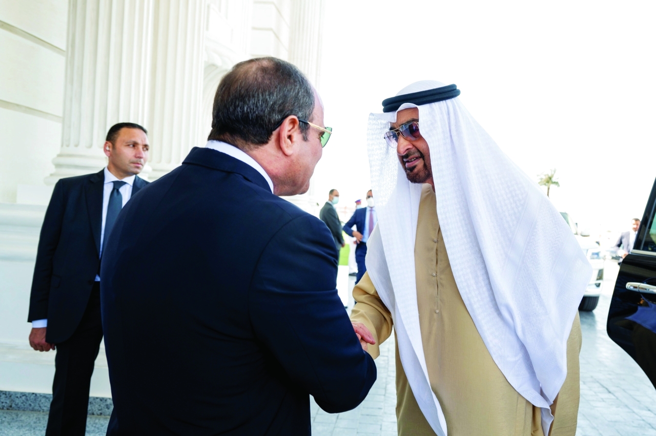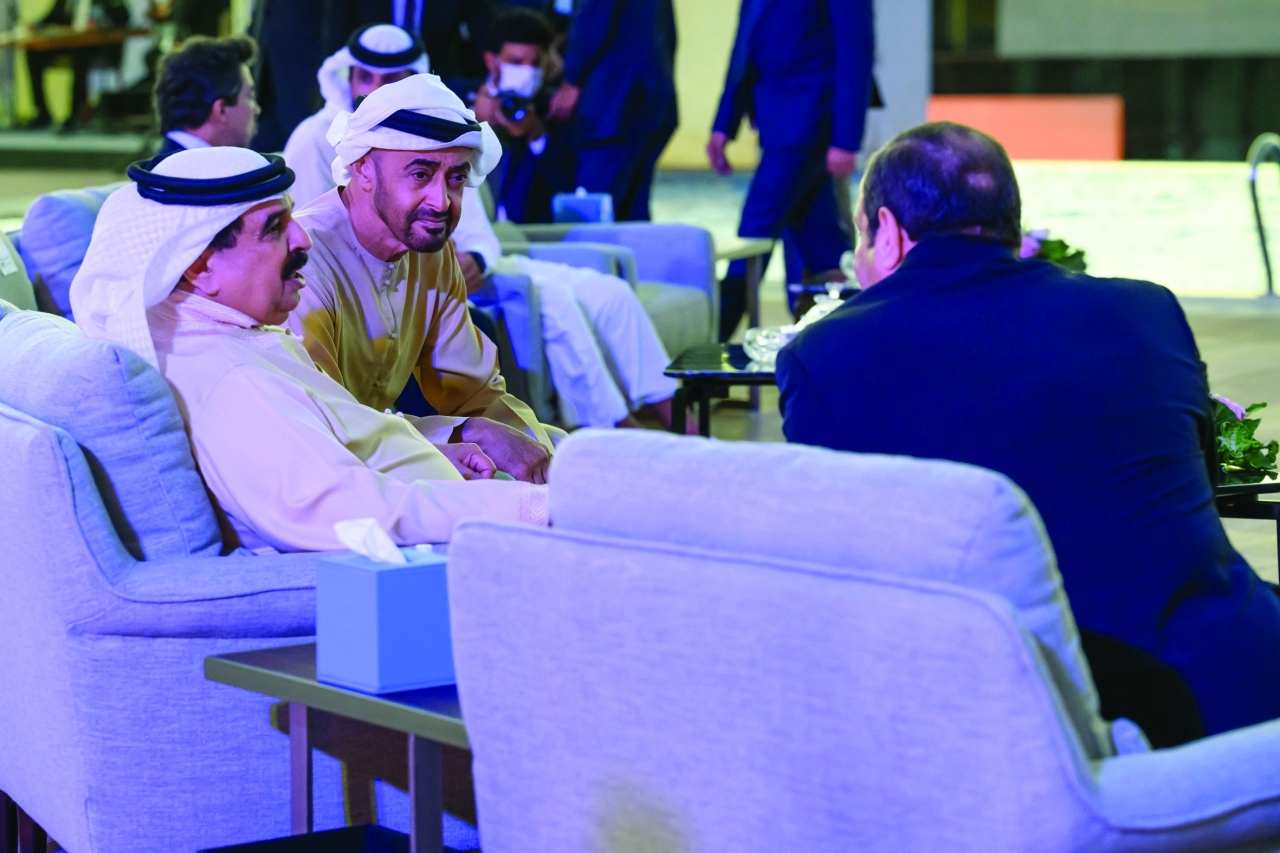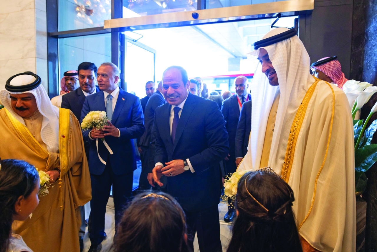 وكان صاحب السمو رئيس الدولة والرئيس المصري قد استقبلا في مطار العلمين إخوانهما جلالة ملك البحرين وملك الأردن ورئيس وزراء العراق.