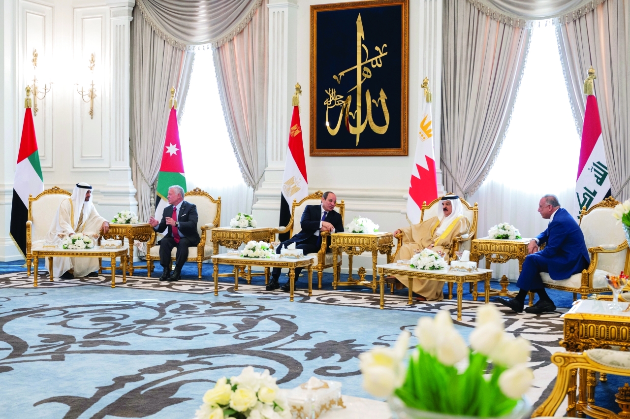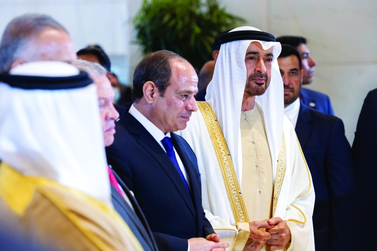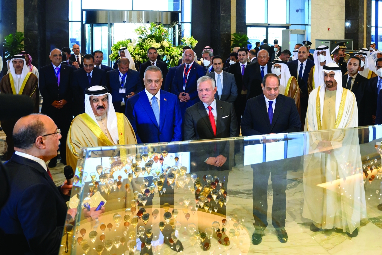 وكان صاحب السمو رئيس الدولة والرئيس المصري قد استقبلا في مطار العلمين إخوانهما جلالة ملك البحرين وملك الأردن ورئيس وزراء العراق.