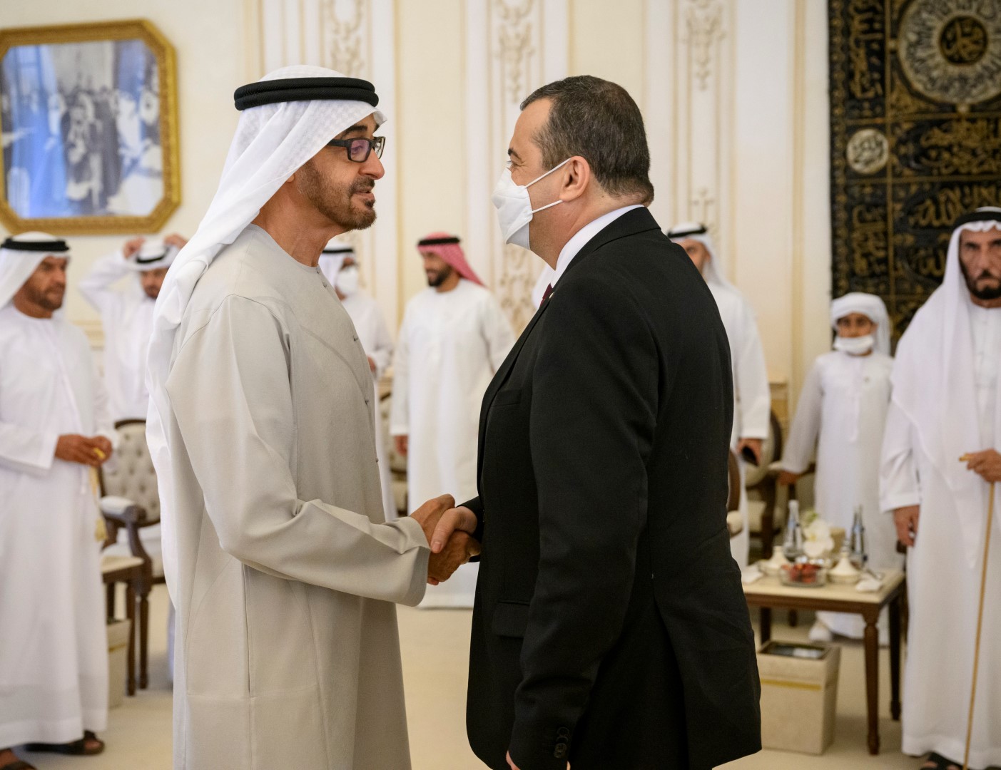 حضر مجلس قصر البحر .. سمو الشيخ راشد بن سعود بن راشد المعلا ولي عهد أم القيوين وسمو الشيخ حمدان بن زايد آل نهيان ممثل الحاكم في منطقة الظفرة وسمو الشيخ طحنون بن محمد آل نهيان ممثل الحاكم في منطقة العين وسمو الشيخ سرور بن محمد آل نهيان والفريق سمو الشيخ سيف بن زايد آل نهيان نائب رئيس مجلس الوزراء وزير الداخلية وسمو الشيخ منصور بن زايد آل نهيان نائب رئيس مجلس الوزراء وزير ديوان الرئاسة وسمو الشيخ حامد بن زايد آل نهيان عضو المجلس التنفيذي لإمارة أبوظبي وسمو الشيخ خالد بن زايد آل نهيان رئيس مجلس إدارة مؤسسة زايد العليا لأصحاب الهمم وسمو الشيخ خالد بن محمد بن زايد آل نهيان عضو المجلس التنفيذي رئيس مكتب أبوظبي التنفيذي وسمو الشيخ حمدان بن محمد بن زايد آل نهيان.